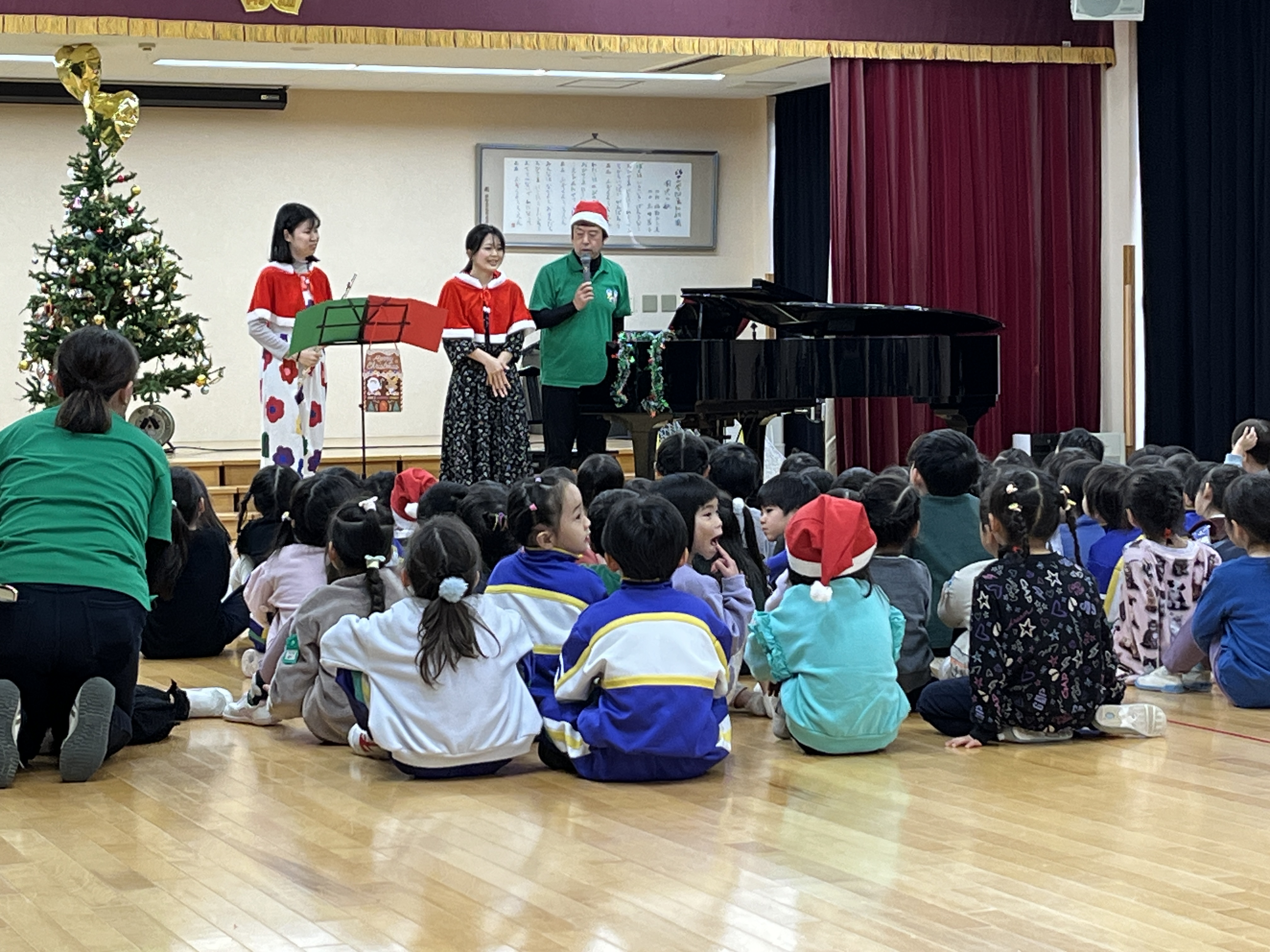 先生たちによるフルートとピアノの演奏会があったり、みんなでクリスマスの歌を歌ったりして楽しみました。