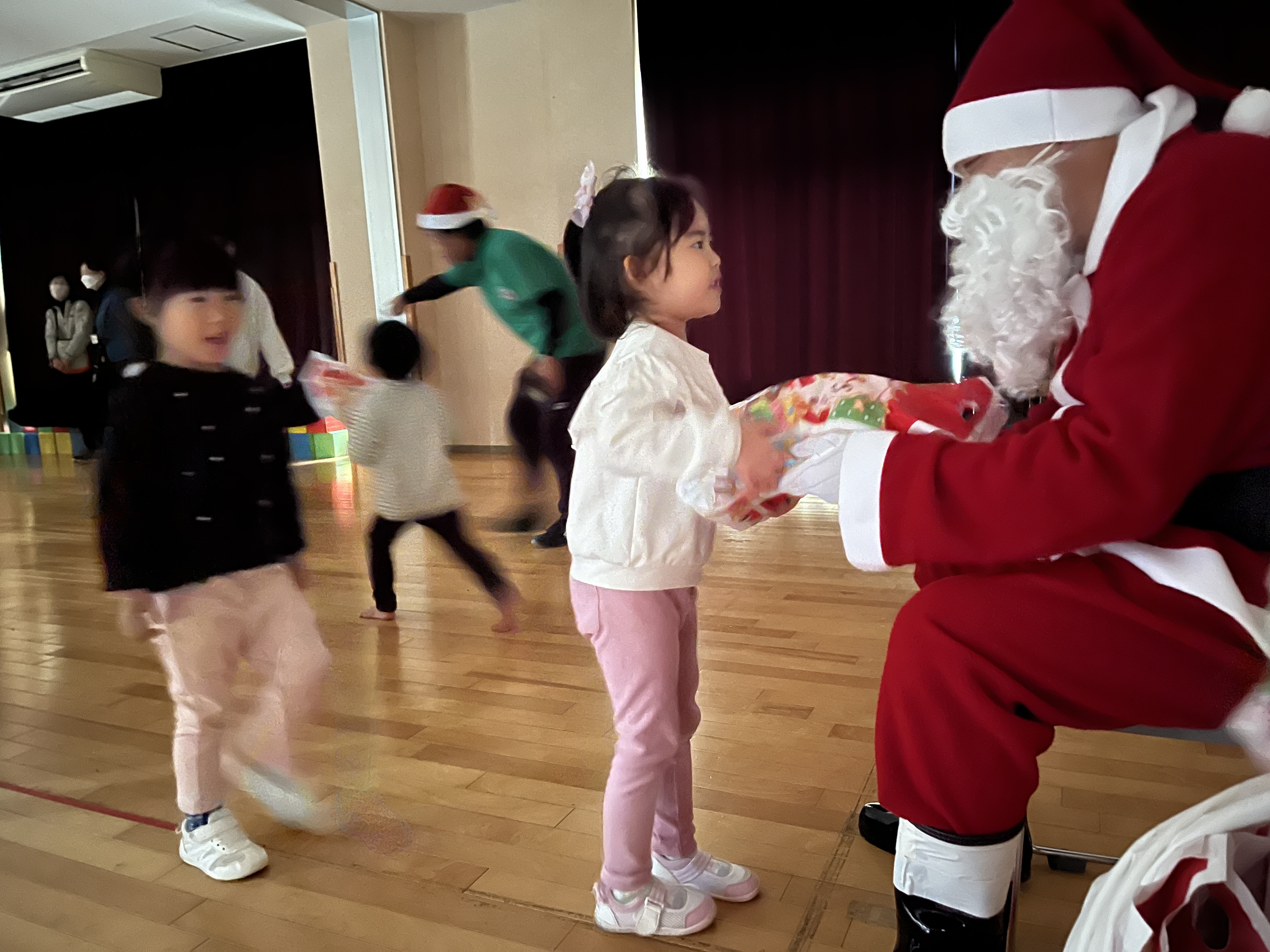 最後はサンタさんが来てくれて、みんなプレゼントをもらいました。