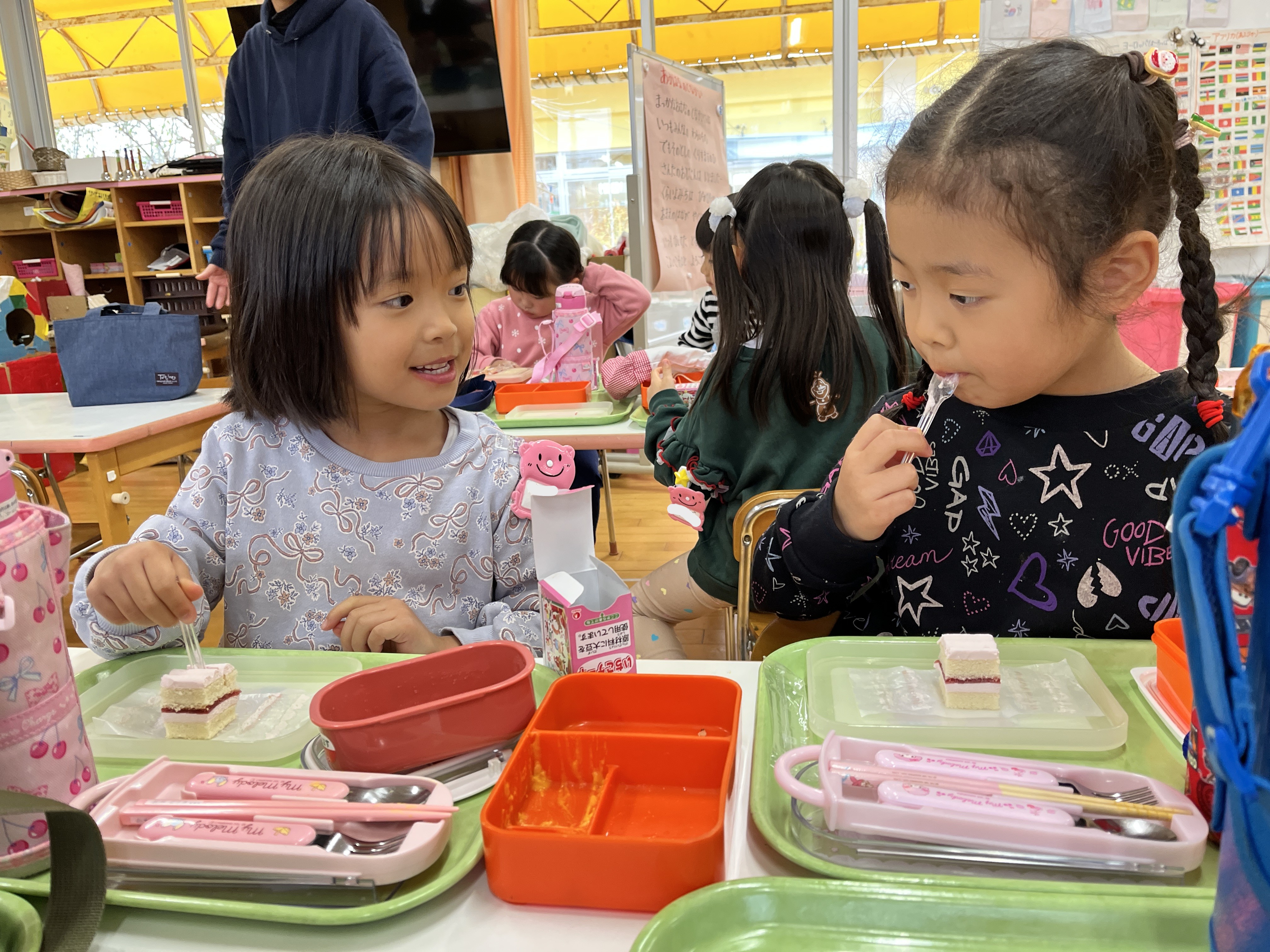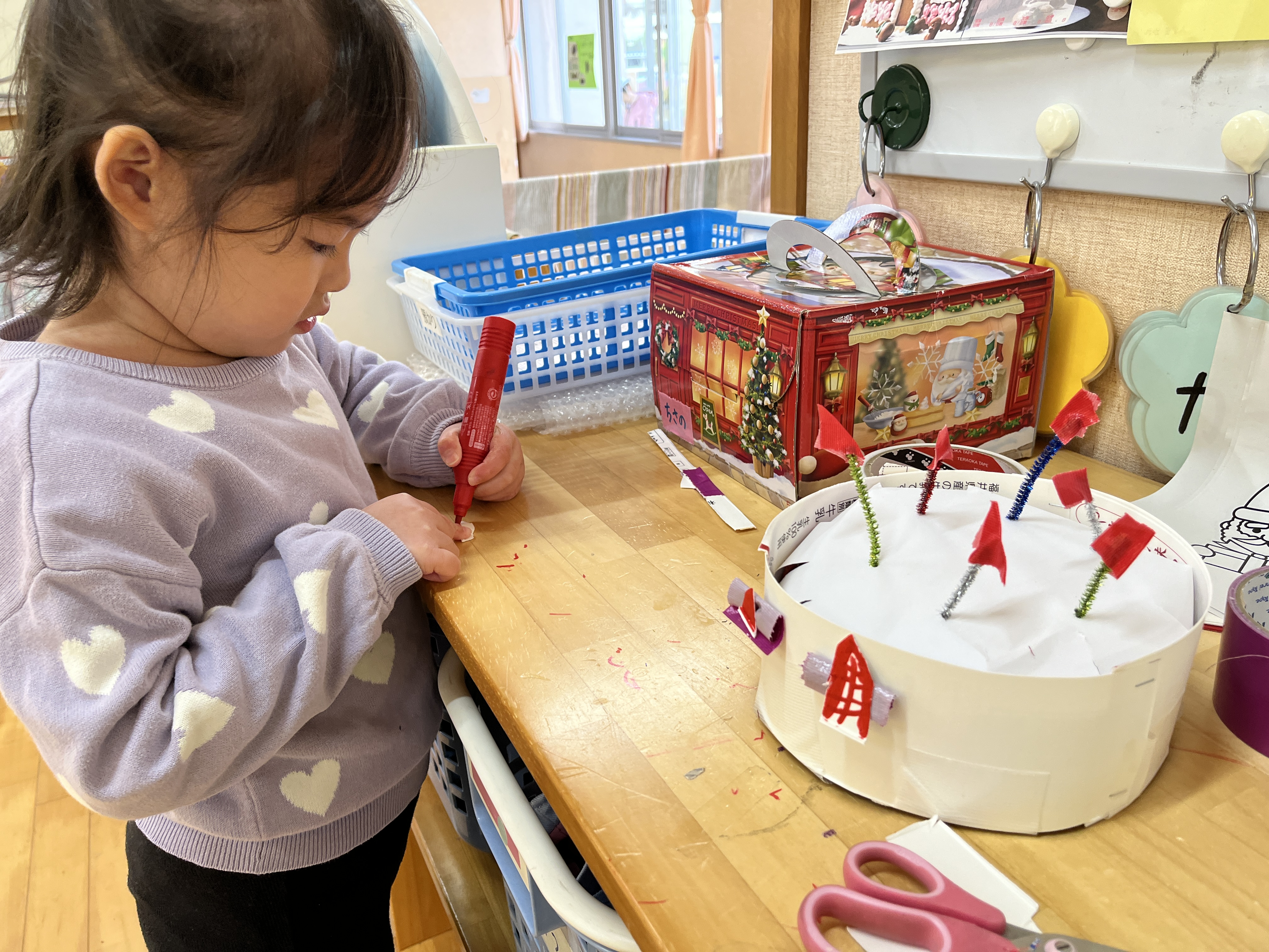 工作でケーキを作ったり、クリスマスケーキを給食で食べたりとそれぞれにクリスマス気分を楽しんでいました。