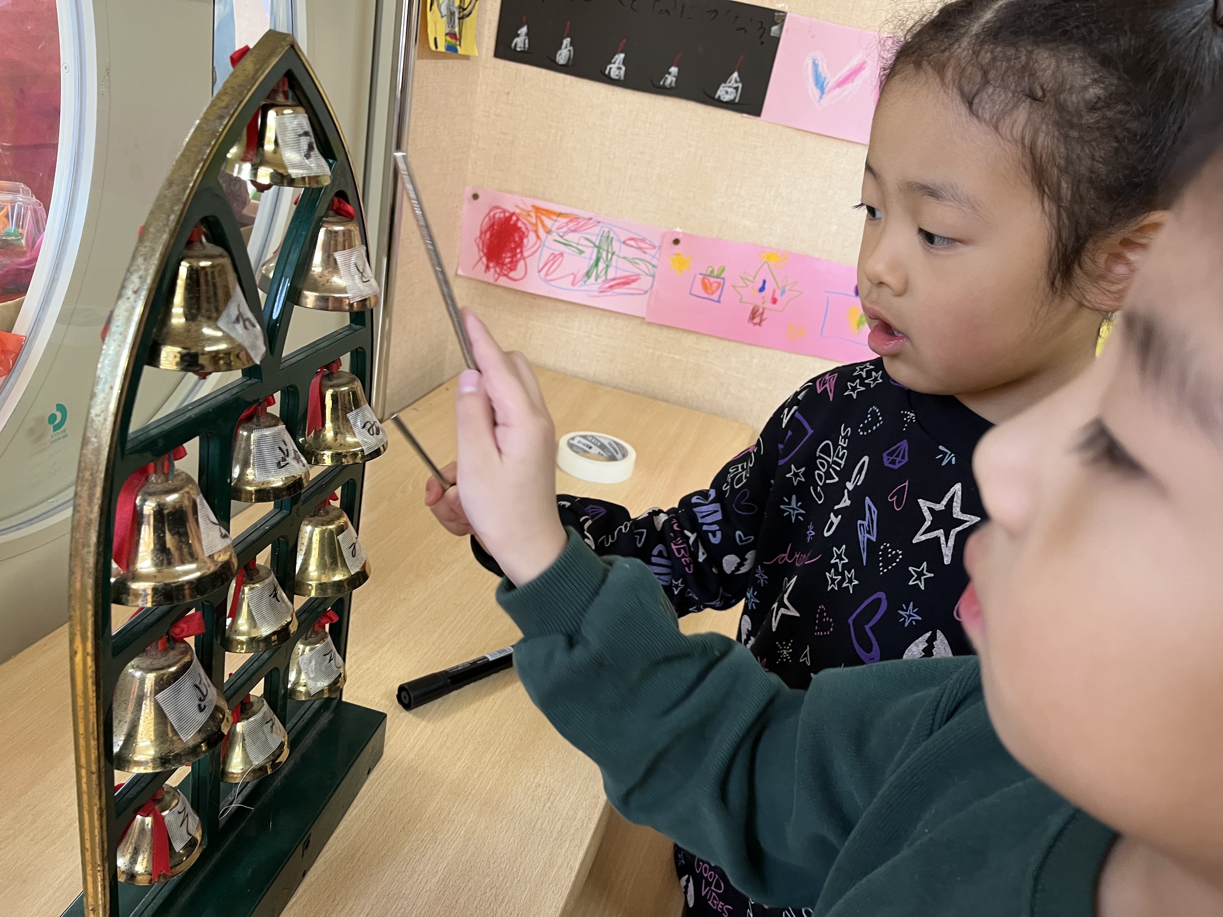 保育室でも、きらきらぼしのハンドベルや電子ピアノ演奏を楽しんだり、