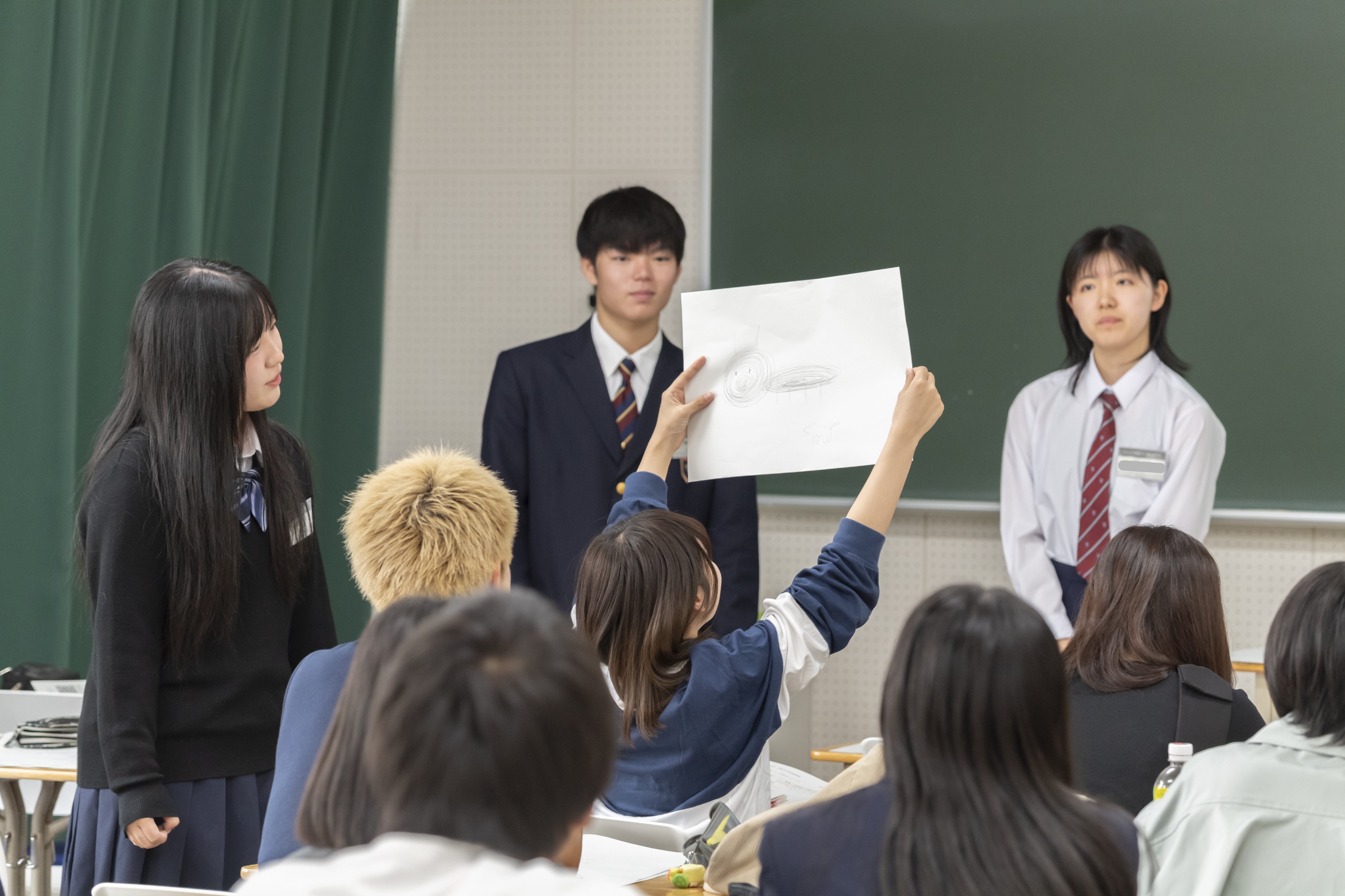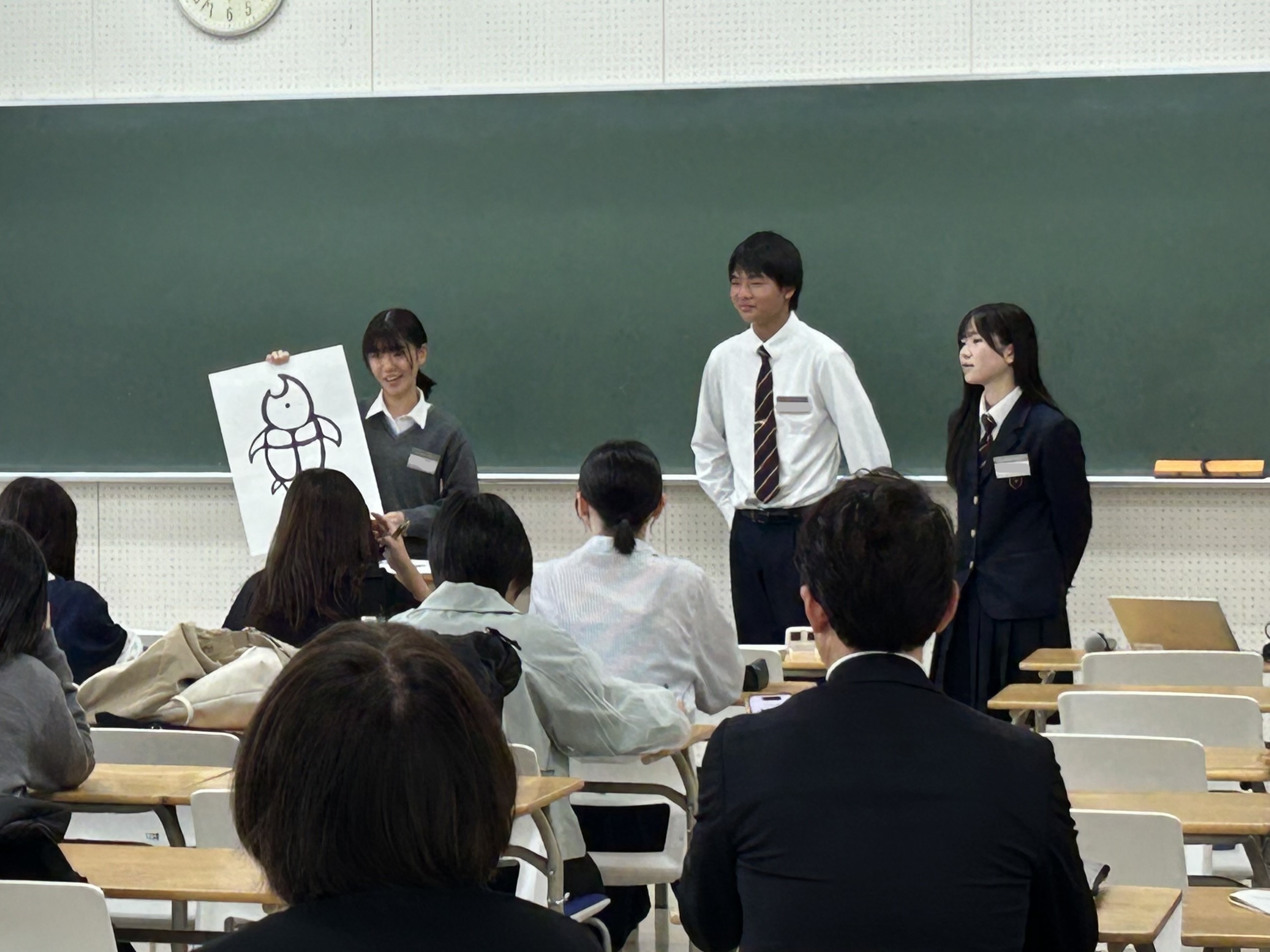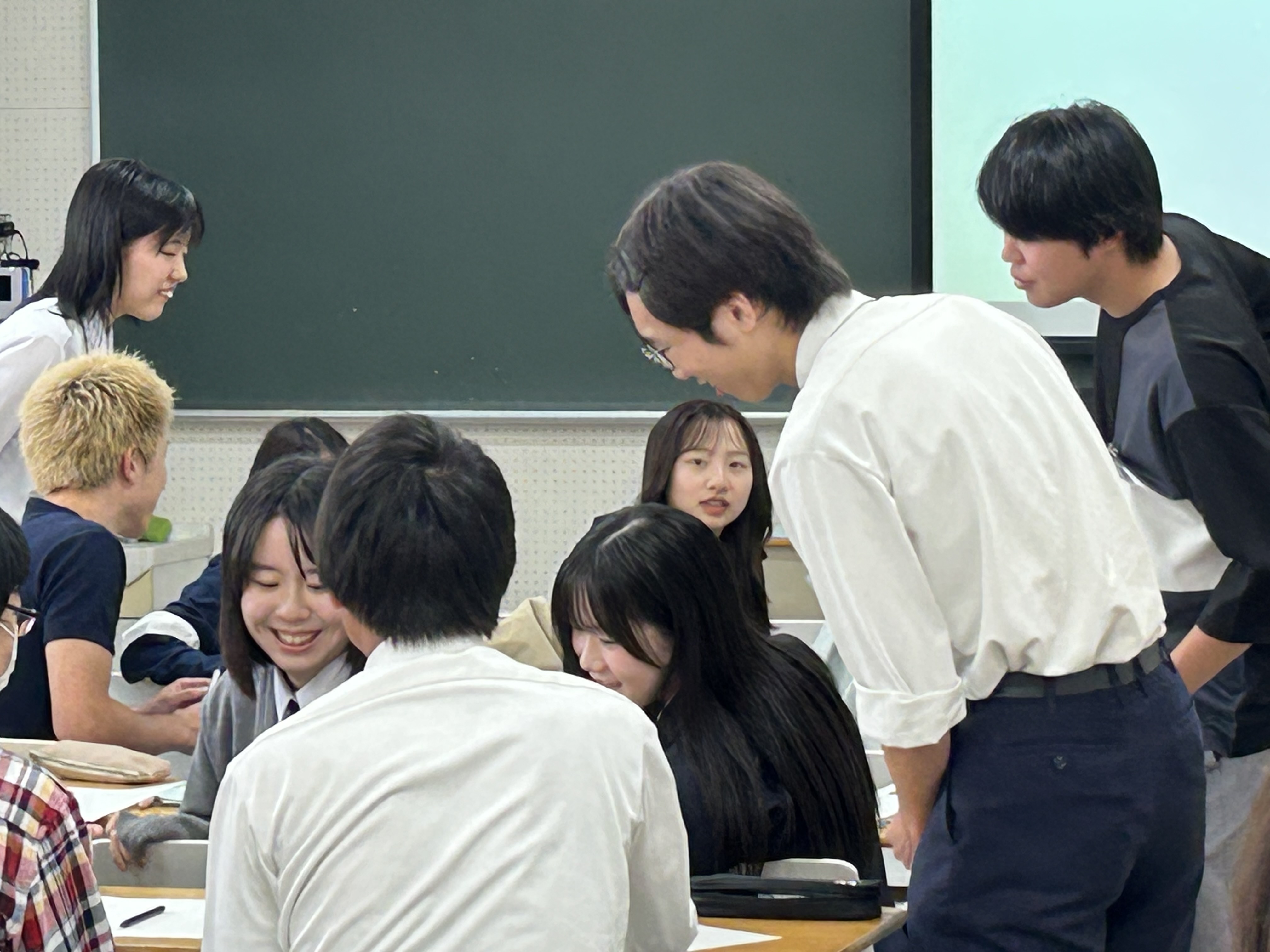 授業後は、大学生の出番です。各班に対して的確なコメントが求められます。9月末に教育実習を終えたばかりの大学3年生からは、「自身も同じ単元を実際におこなった。…の場面で苦労した。」など、臨場感あふれるコメントが寄せられました。本ワークショップは、間もなく教職に就くであろう学生の成長の様子が垣間見える機会でした。