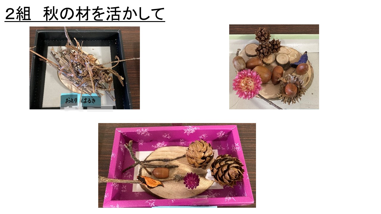 2年「まおねこだるま」(手作りだるま) 2年「鬼ちゃんと福ちゃん」(紙刺しゅう作品)