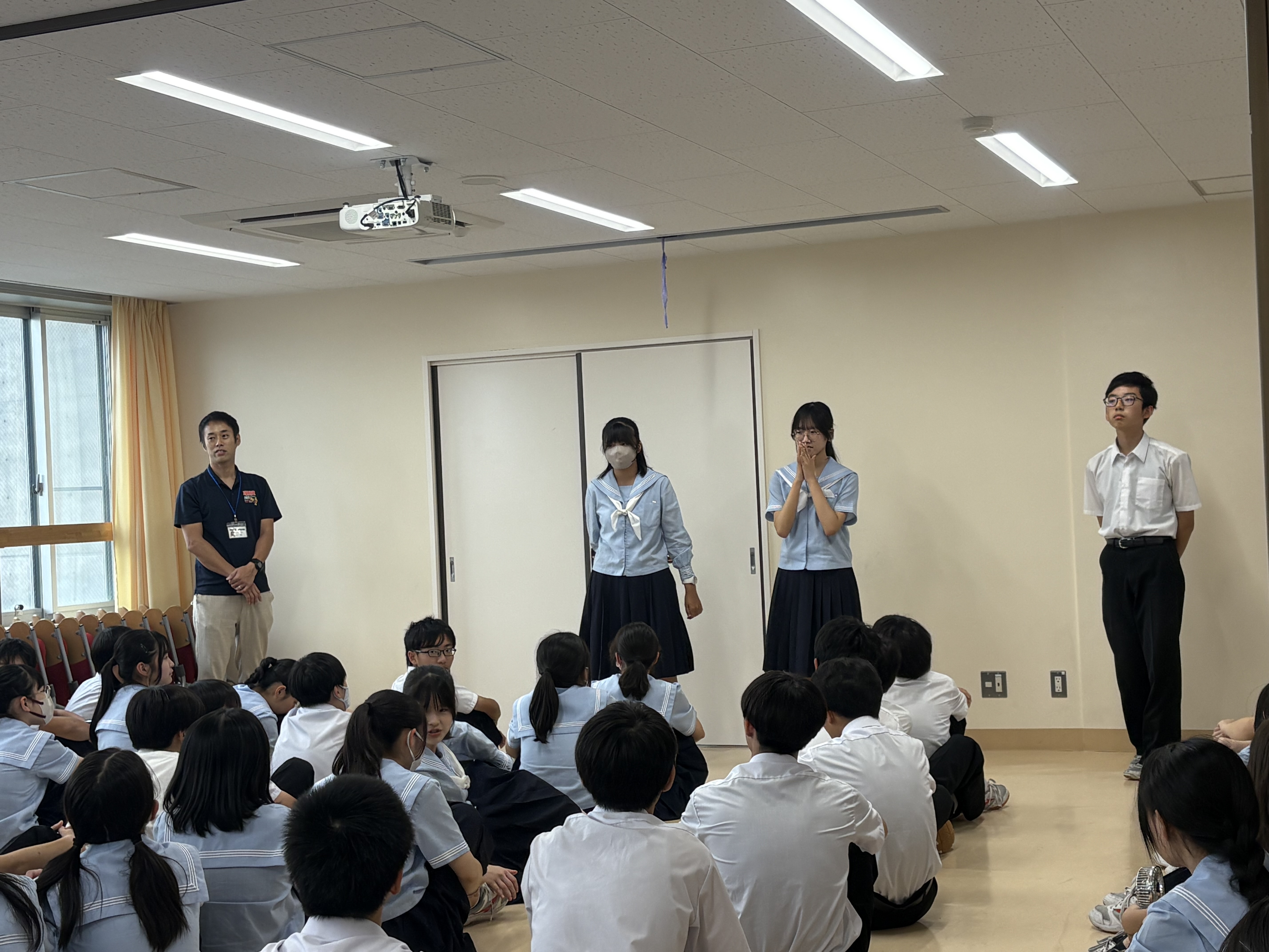 9年生の学年集会が開かれ、文化祭で中心的に活躍したメンバーが語る時間がもたれました。とても暖かい雰囲気の中、仲間の声に耳を傾け、それぞれの文化祭の思い出を蘇られせながら、その価値を共有する時間でした。