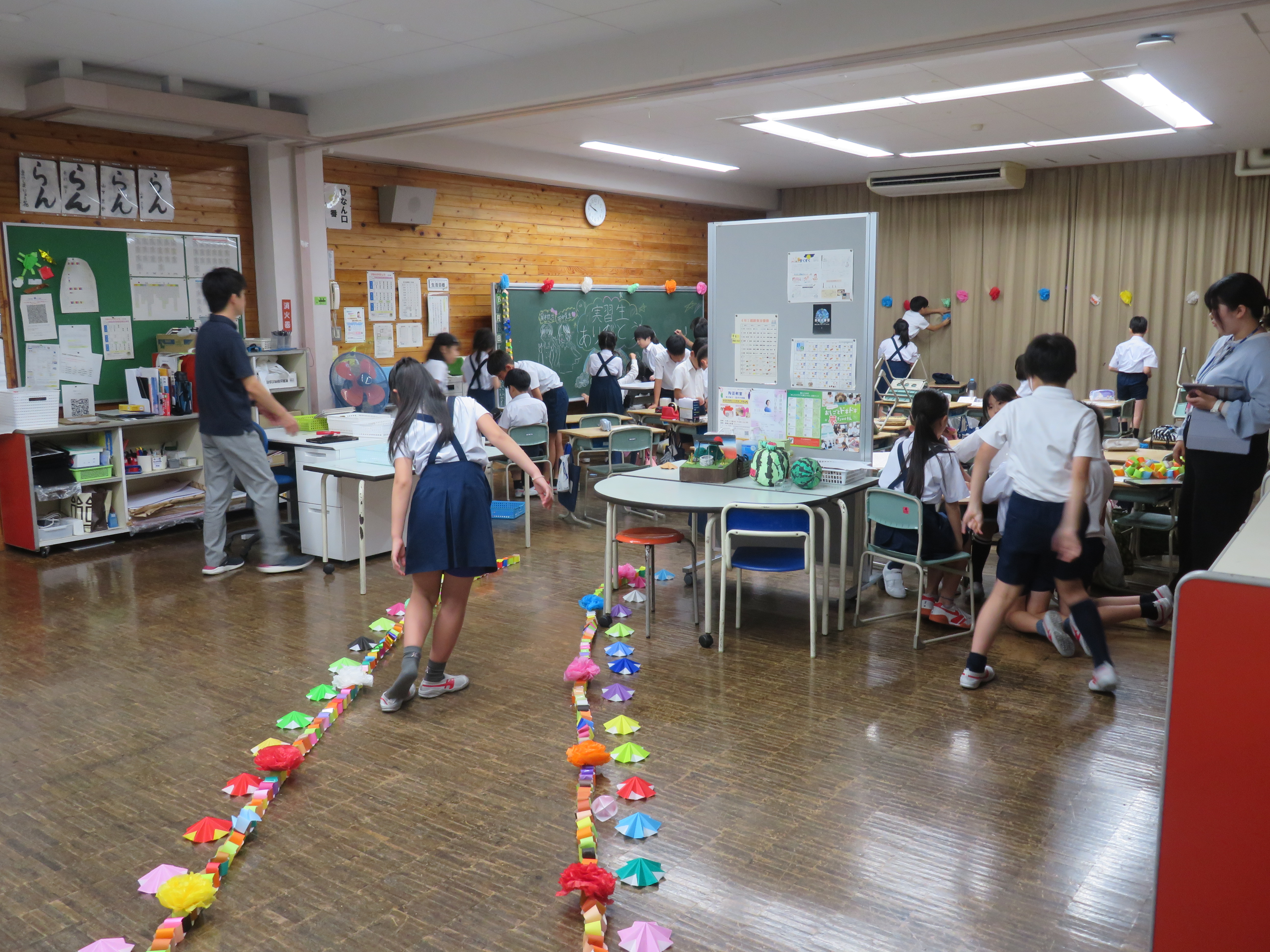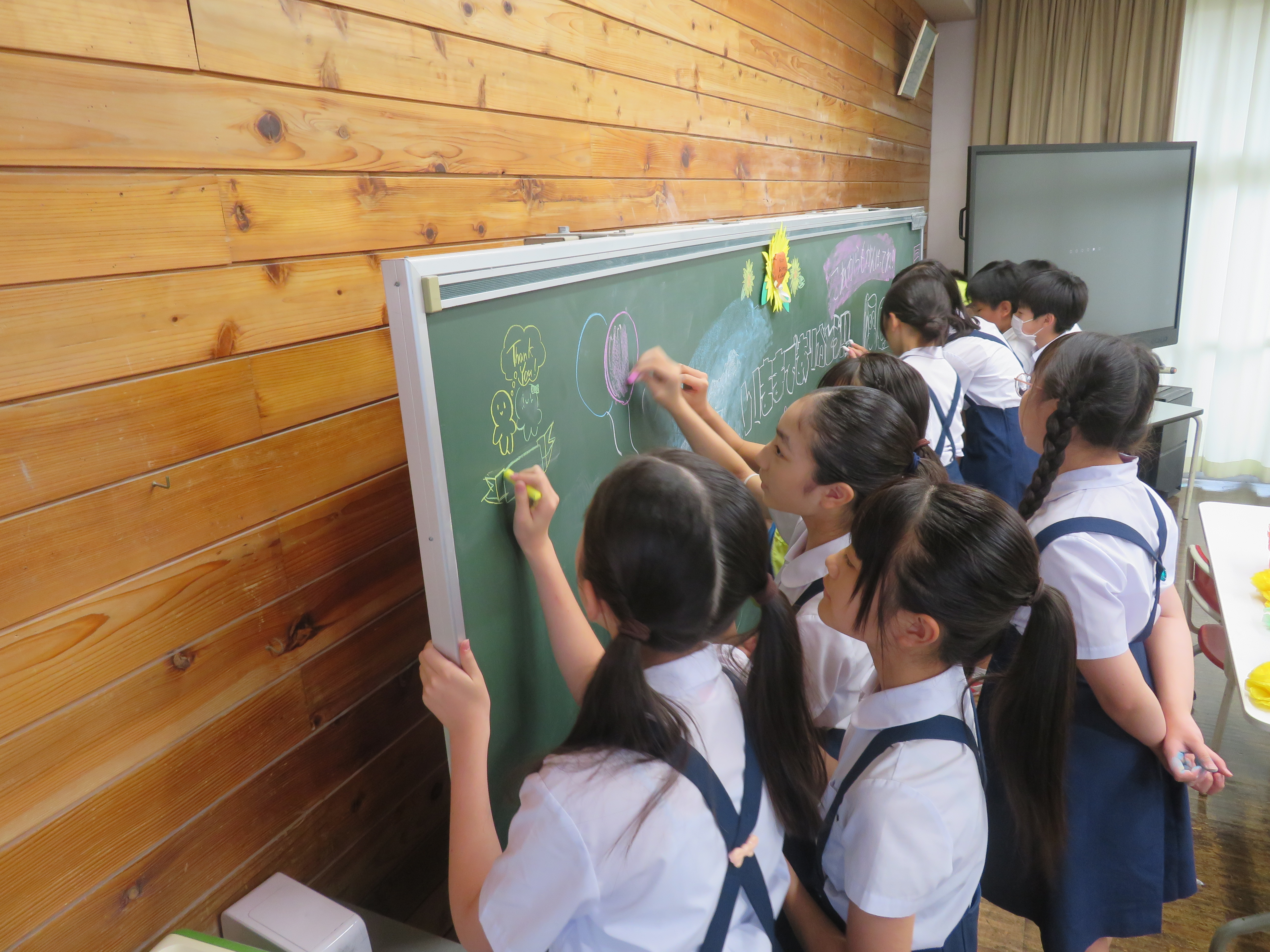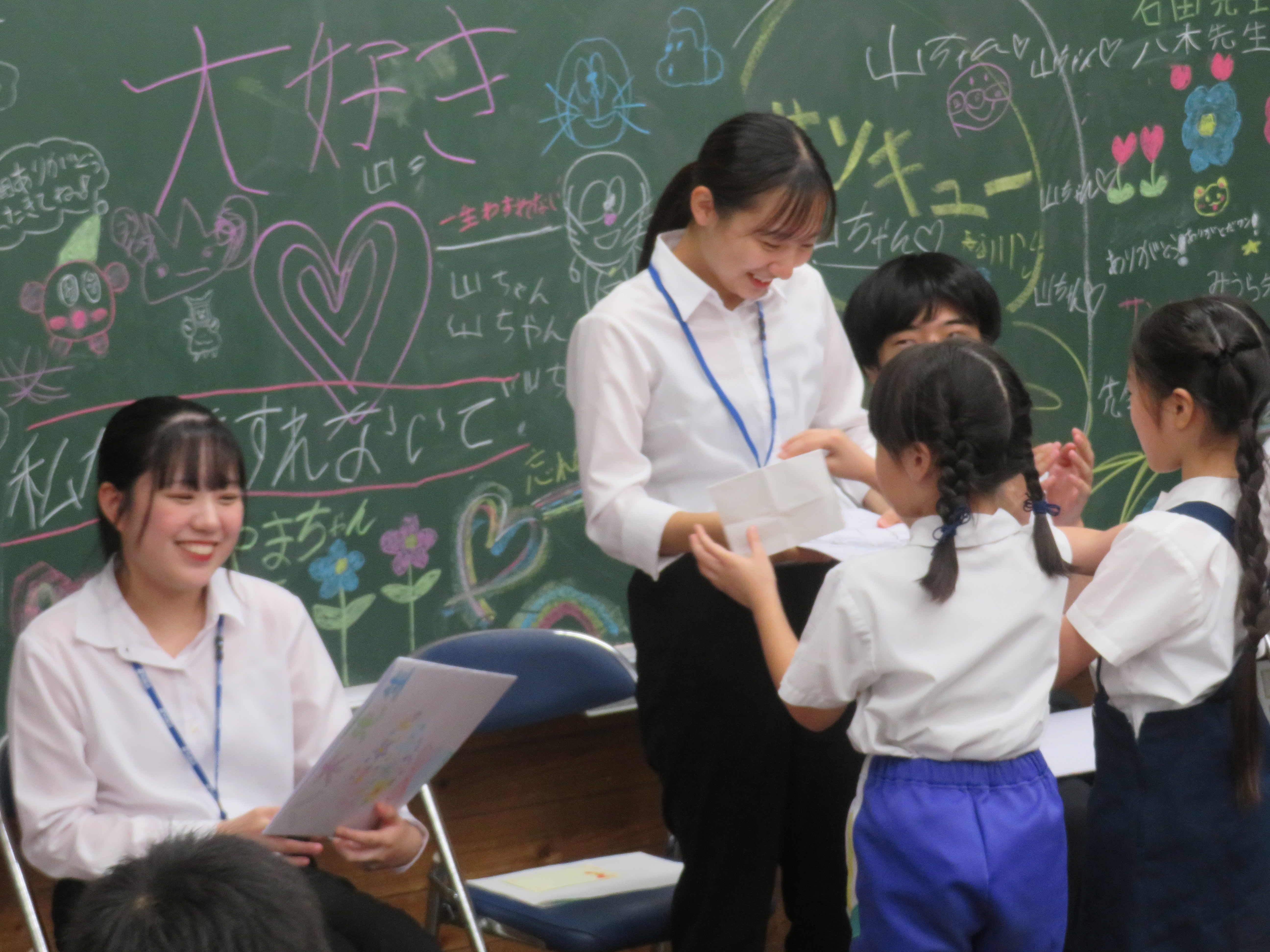 ACTIVITY 活動紹介 ホームchevron_right活動紹介chevron_right実習生とのお別れ会 実習生とのお別れ会 2025.9.28 前期課程 8月末から始まった今年度の教育実習でしたが、9月18日で終了しました。それまでの実習生との関わりの中で、たくさんの思い出をつくった子供たちが、この日はこれまでの感謝の気持ちをこめて、お別れ会を企画していました。きれいに飾り付けた教室に実習生を招待し、一緒に楽しく遊んだり、ゲームをしたり、感謝のプレゼントを渡したりと、最後の濃密な時間を過ごしていました。