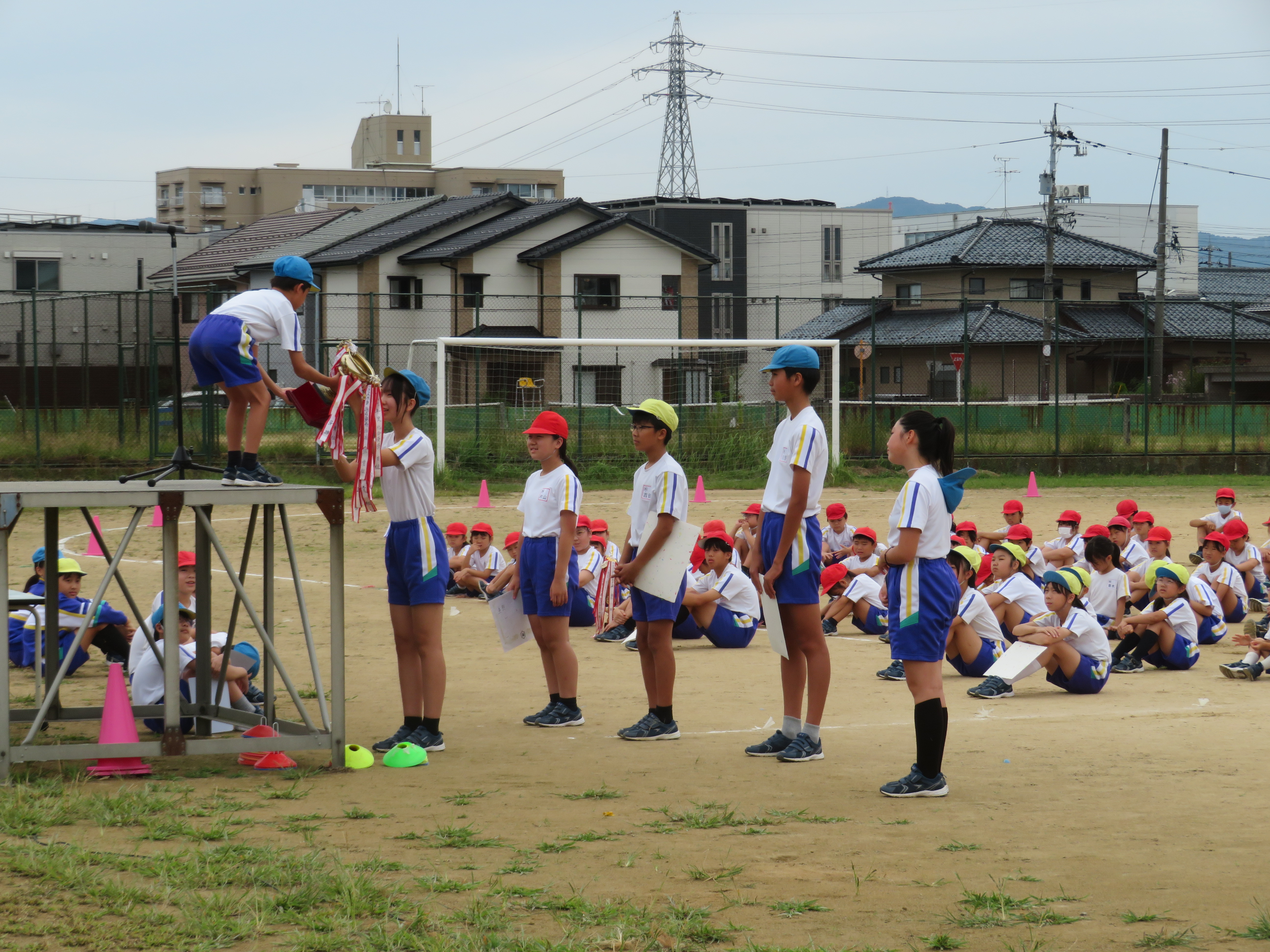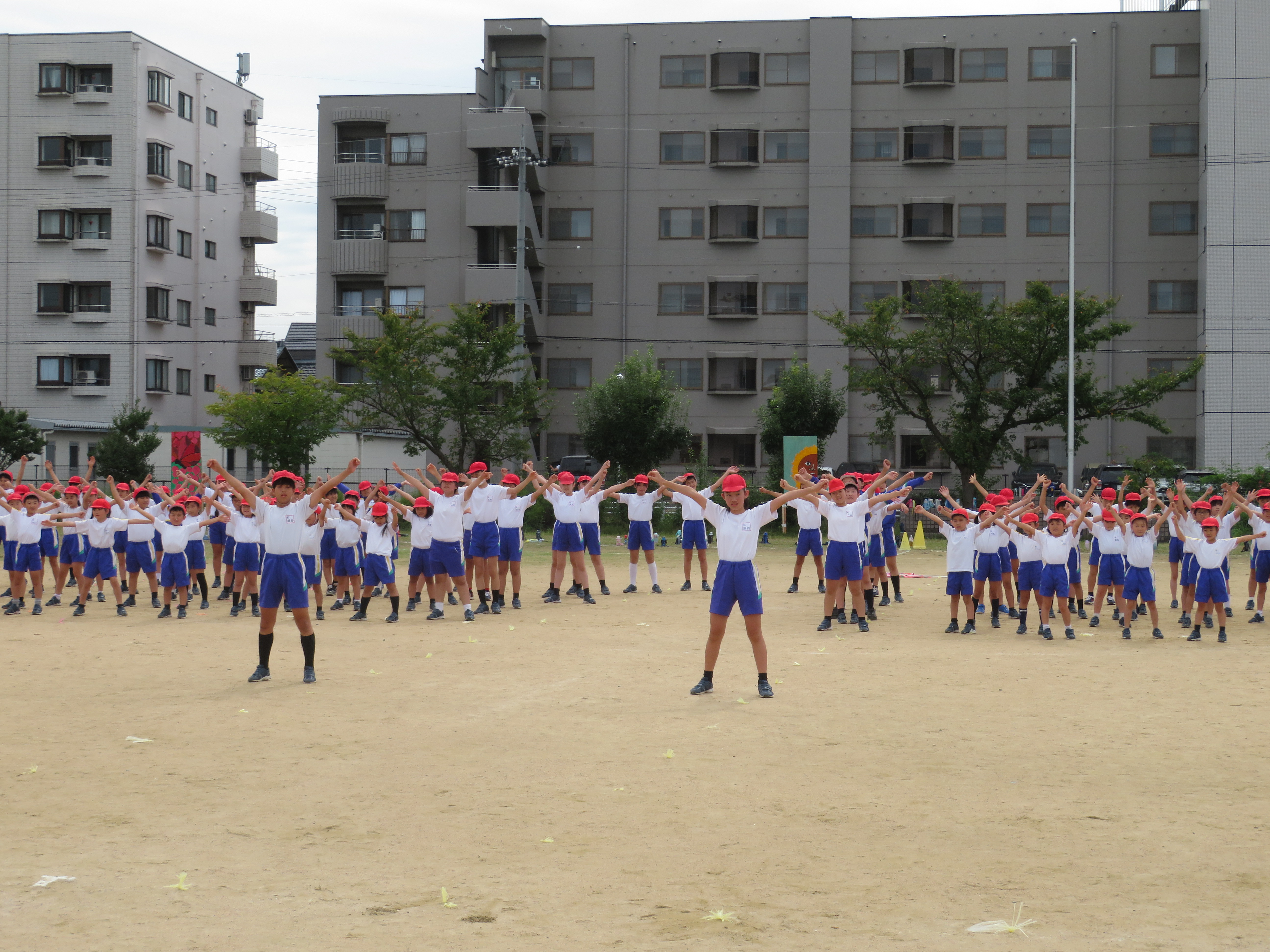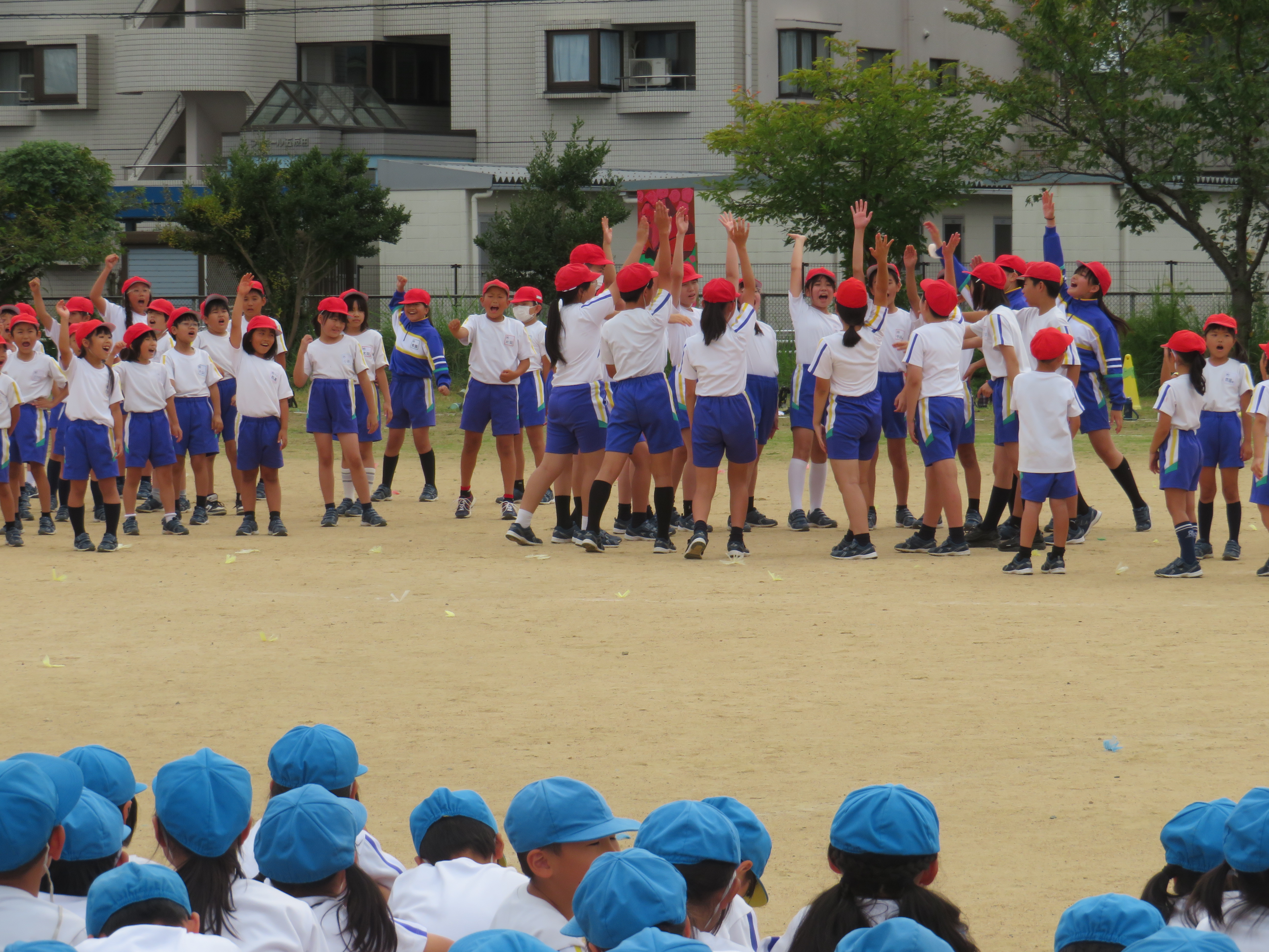 3日の午前中は、応援合戦の予行練習と、全校種目練習が行われました。それと合わせて閉会式の練習も行いました。午前中ずっと外での活動でしたが、子供たちは最後まで頑張って練習に取り組んでいました。応援合戦の予行でも、大きな声を出したり、体を大きく動かしたりして、一生懸命に頑張っていました。