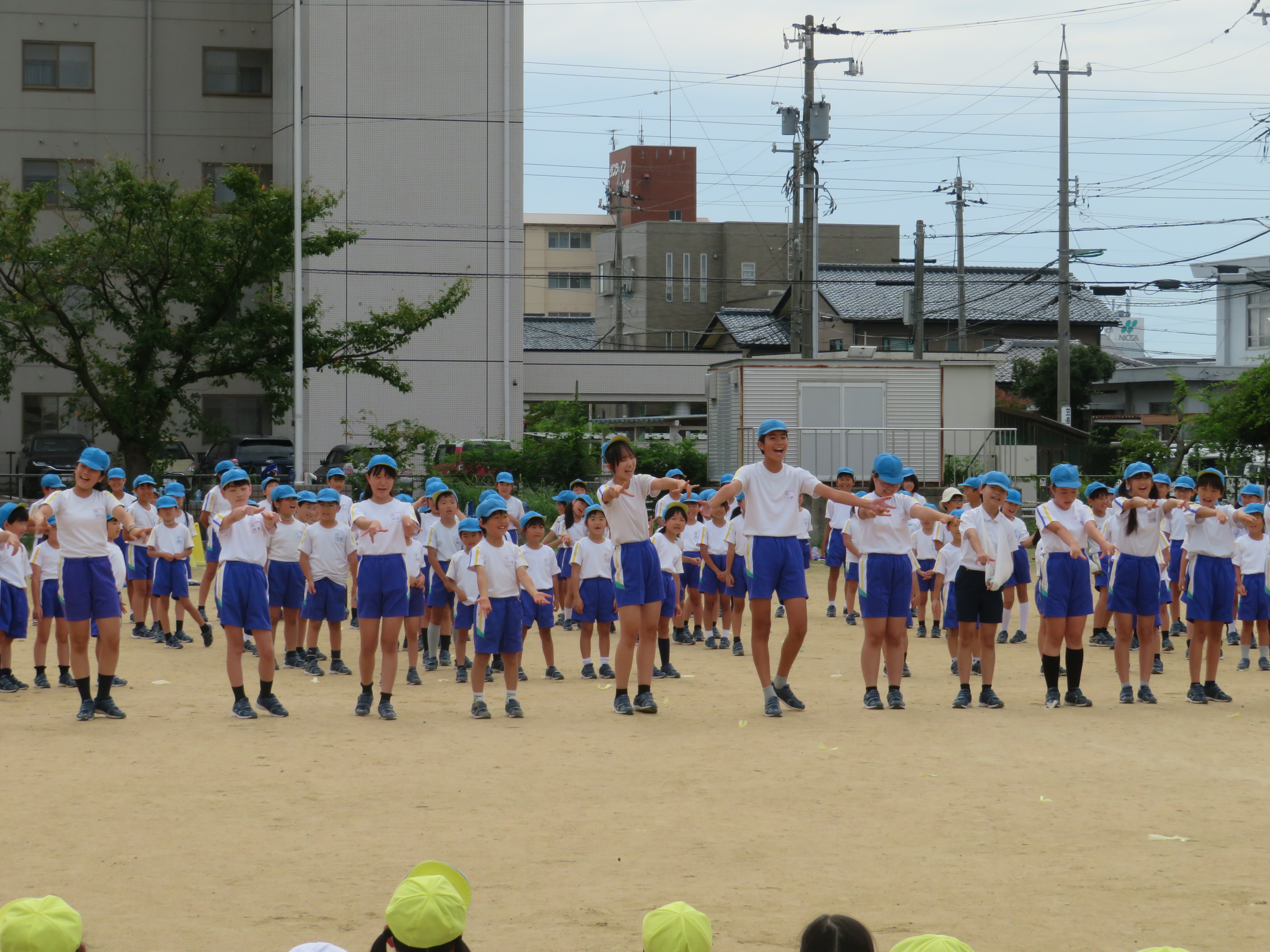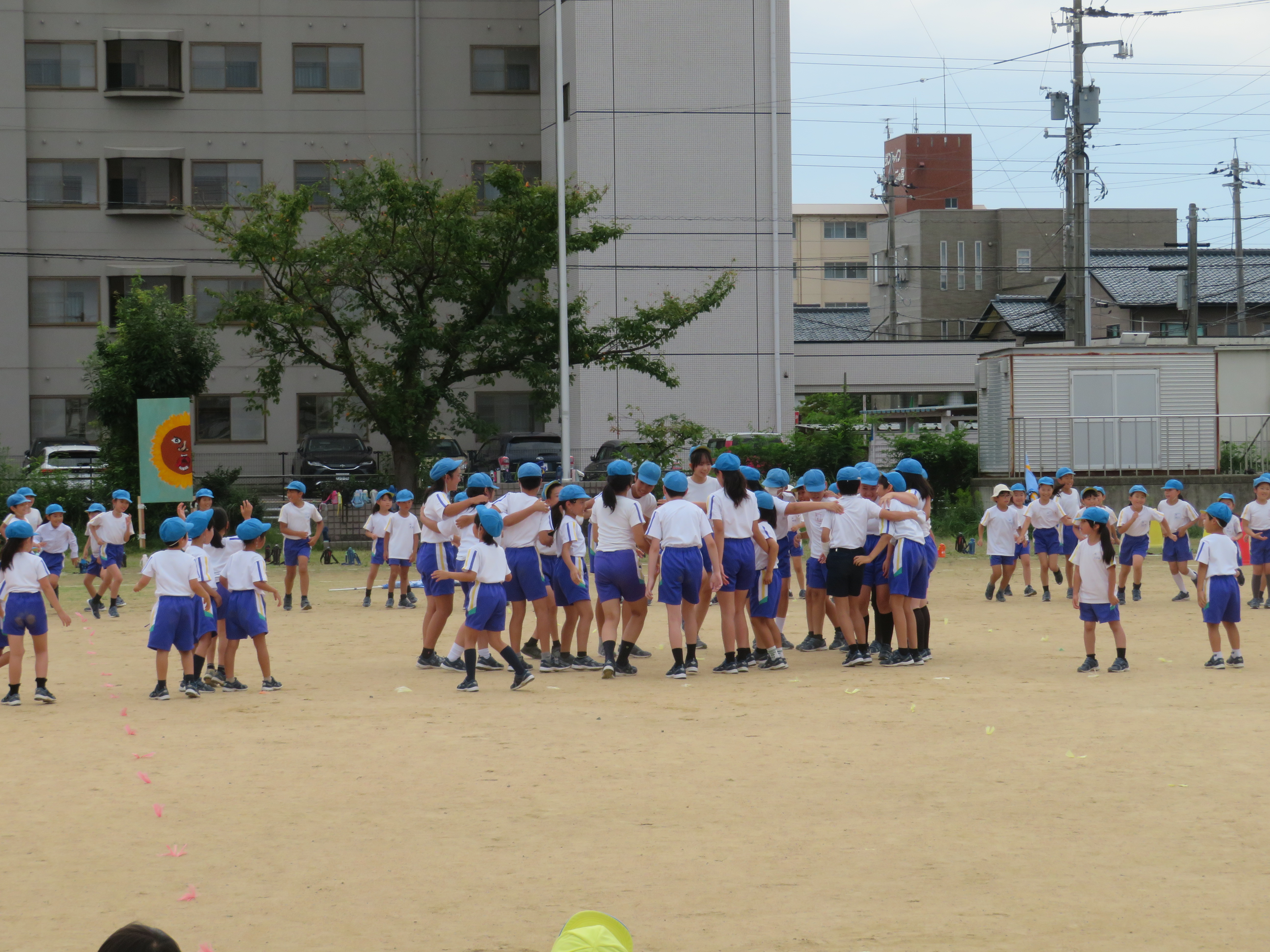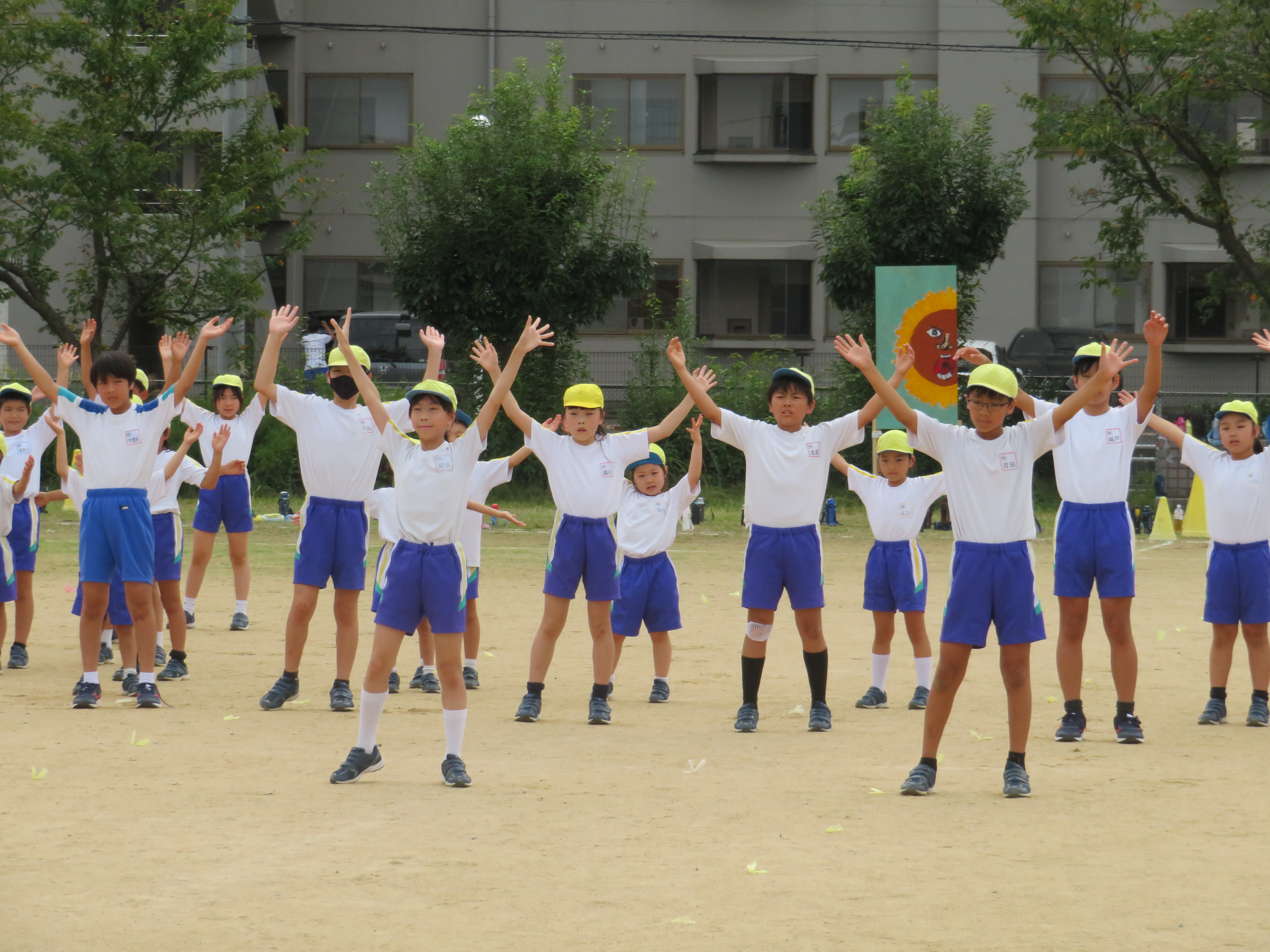 3日の午前中は、応援合戦の予行練習と、全校種目練習が行われました。それと合わせて閉会式の練習も行いました。午前中ずっと外での活動でしたが、子供たちは最後まで頑張って練習に取り組んでいました。応援合戦の予行でも、大きな声を出したり、体を大きく動かしたりして、一生懸命に頑張っていました。
