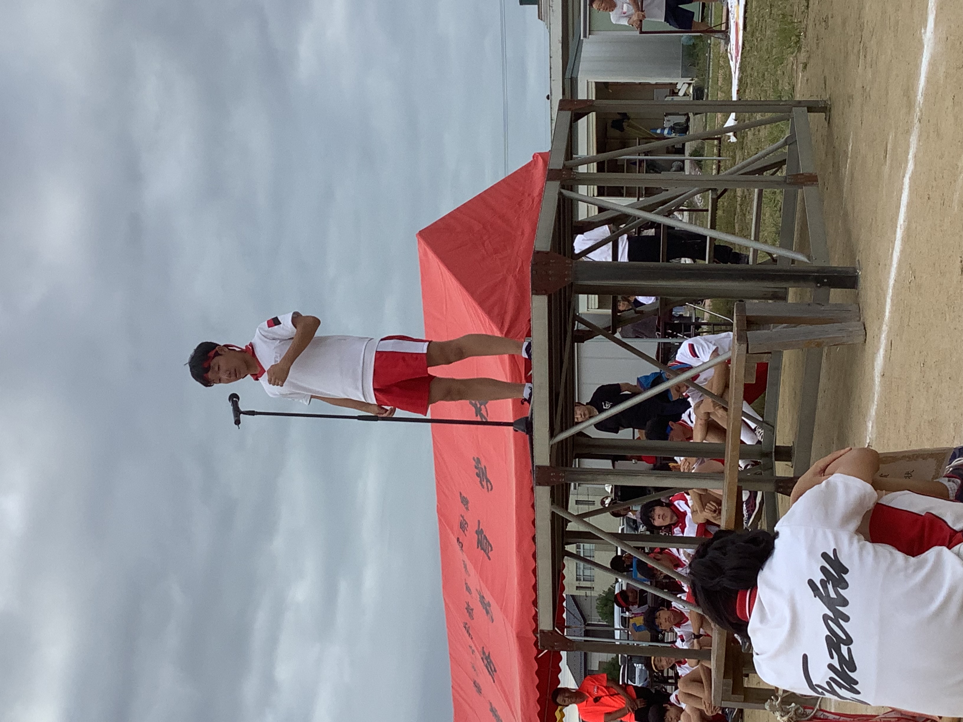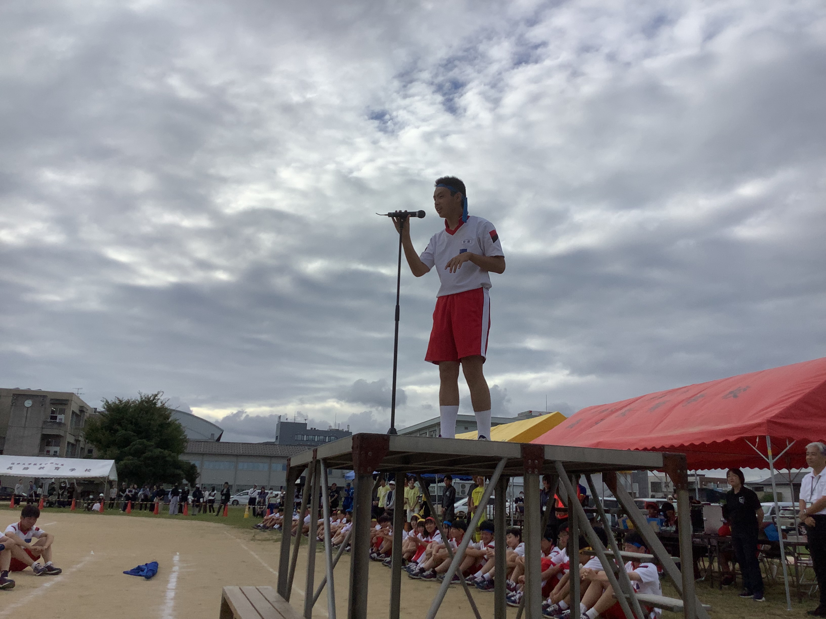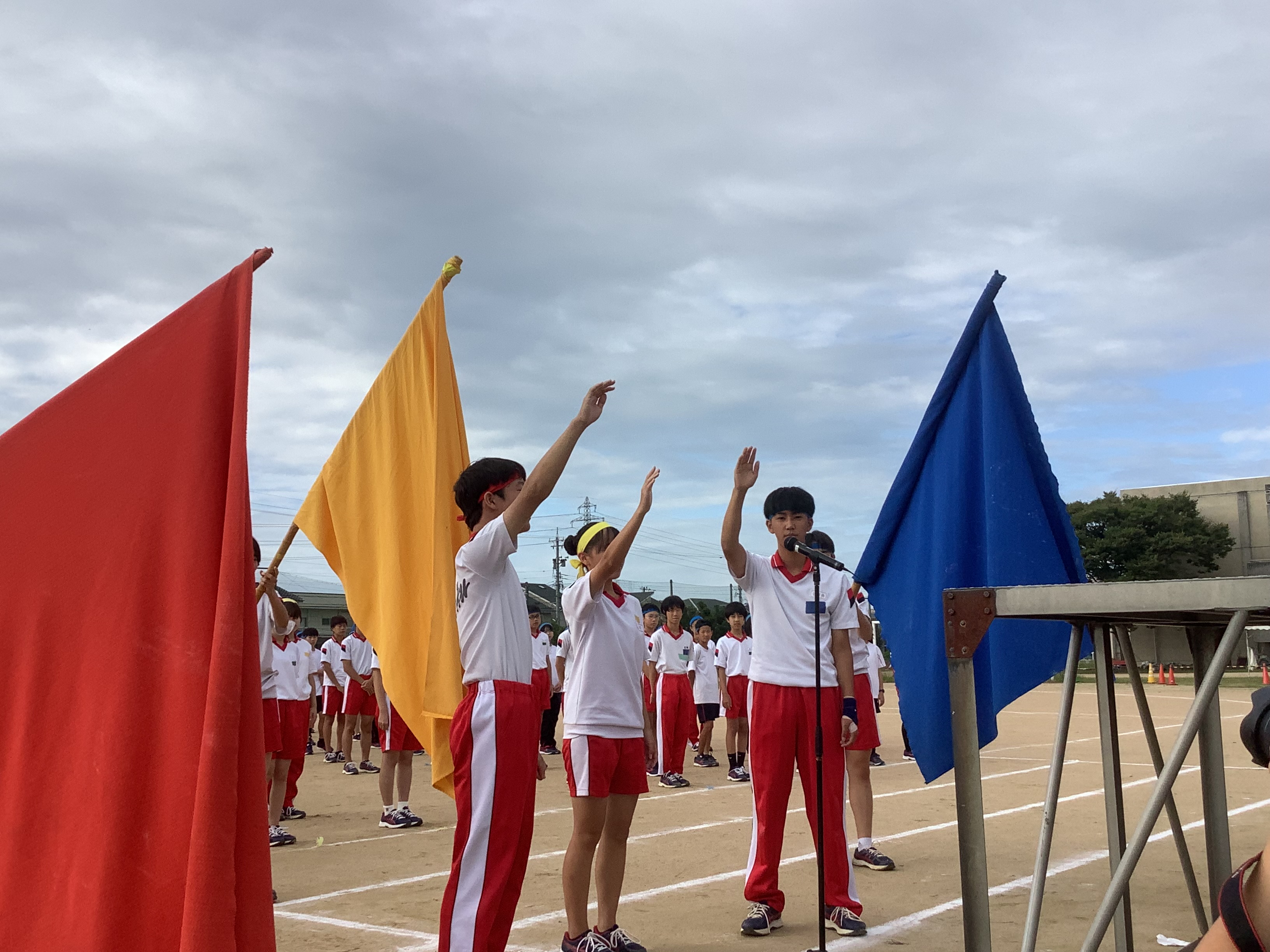 体育祭実行委員長は閉会式で「勝ち負けはありましたが、みんなが楽しめたことが一番です!」と語り、赤組、黄組、青組の応援団長からは、みんなに向けて感謝の言葉が述べられました。