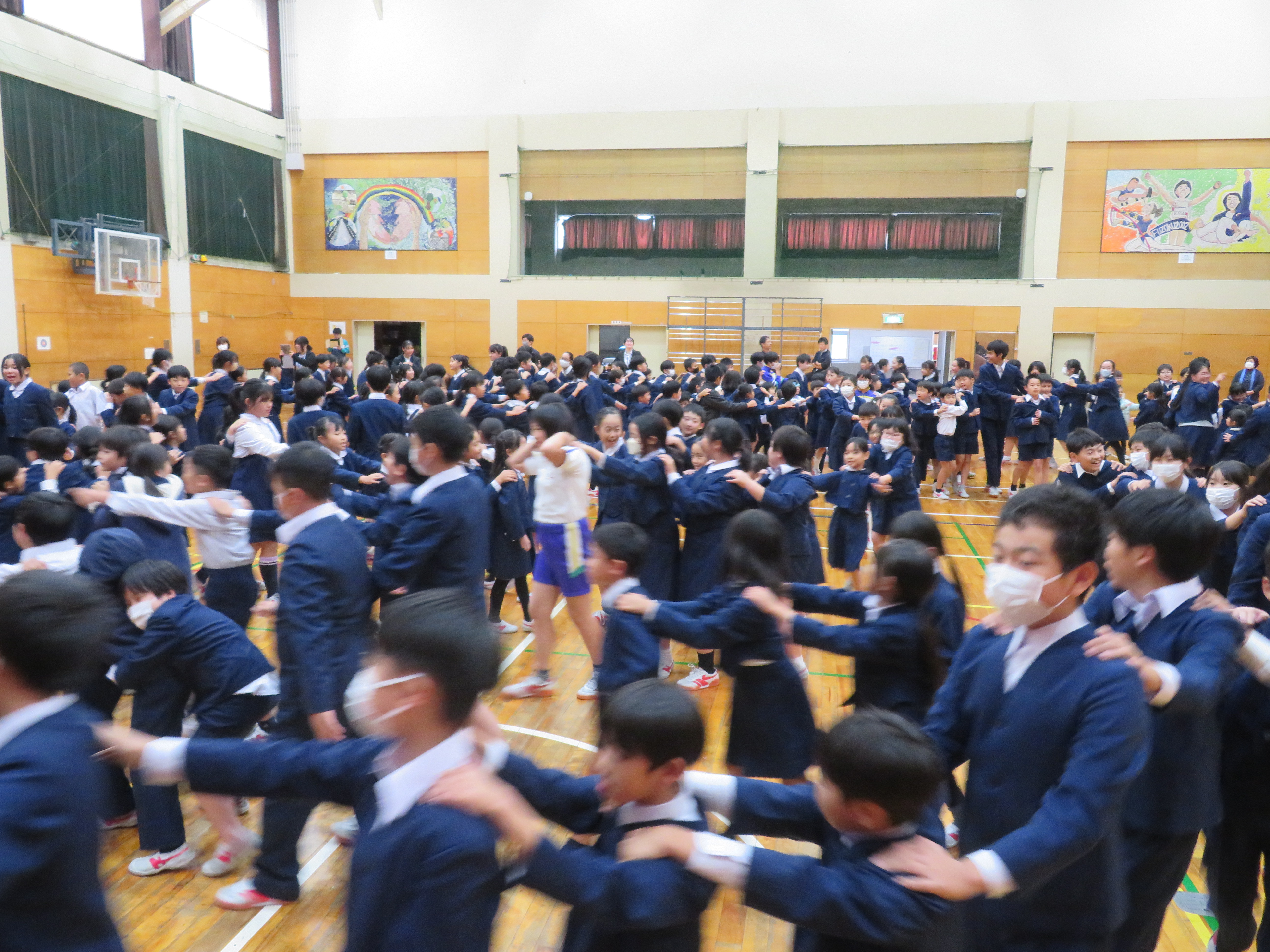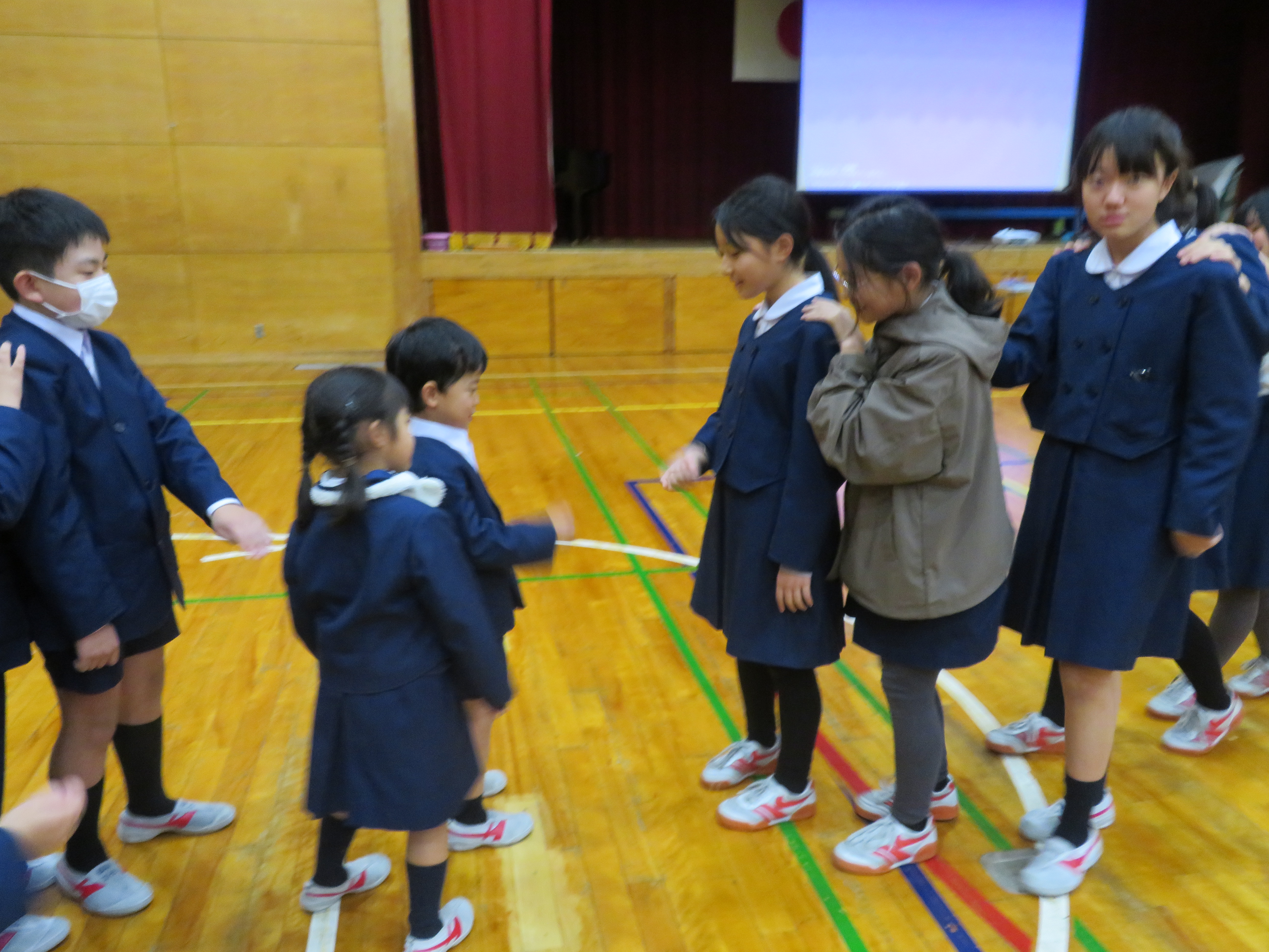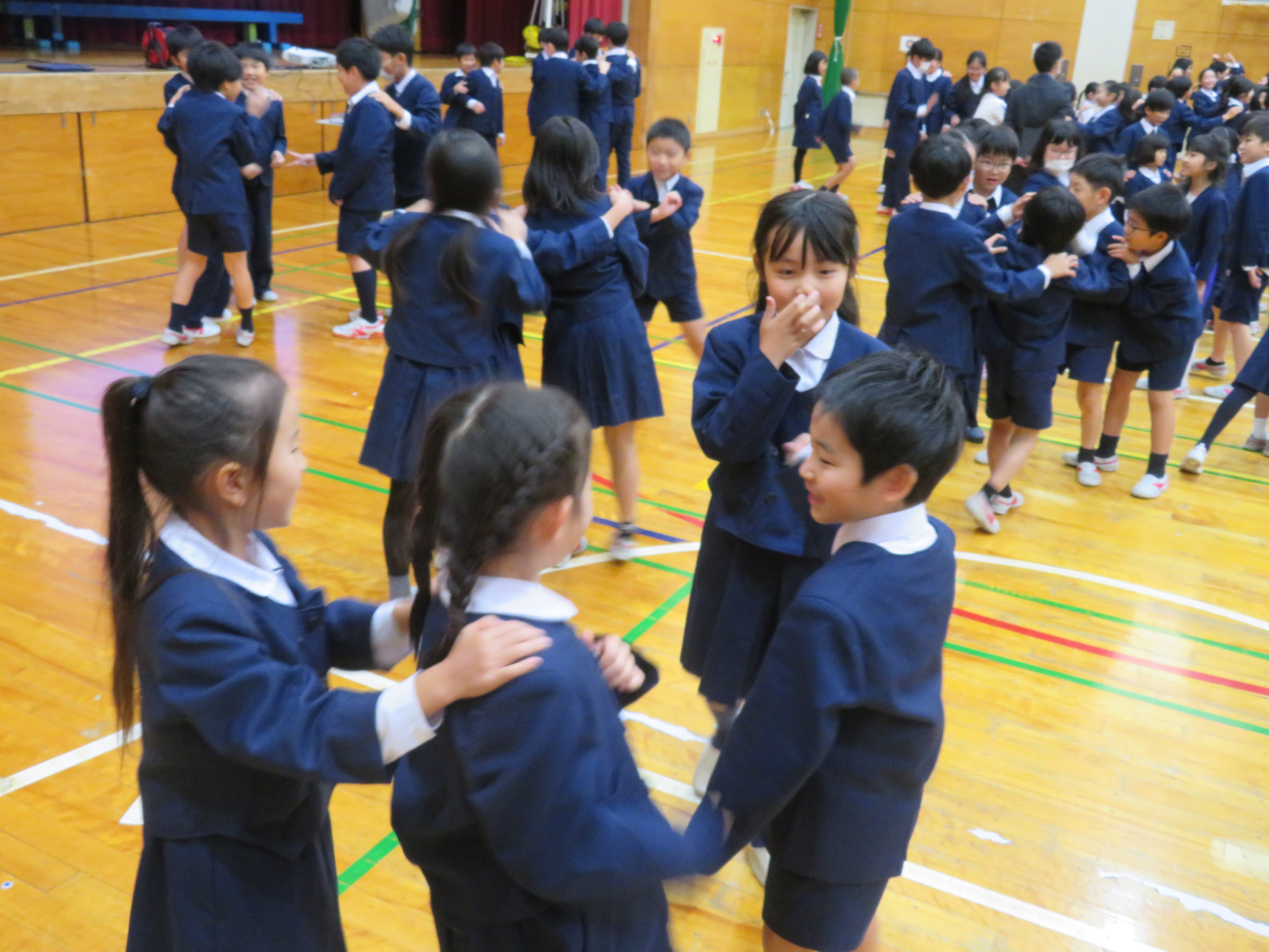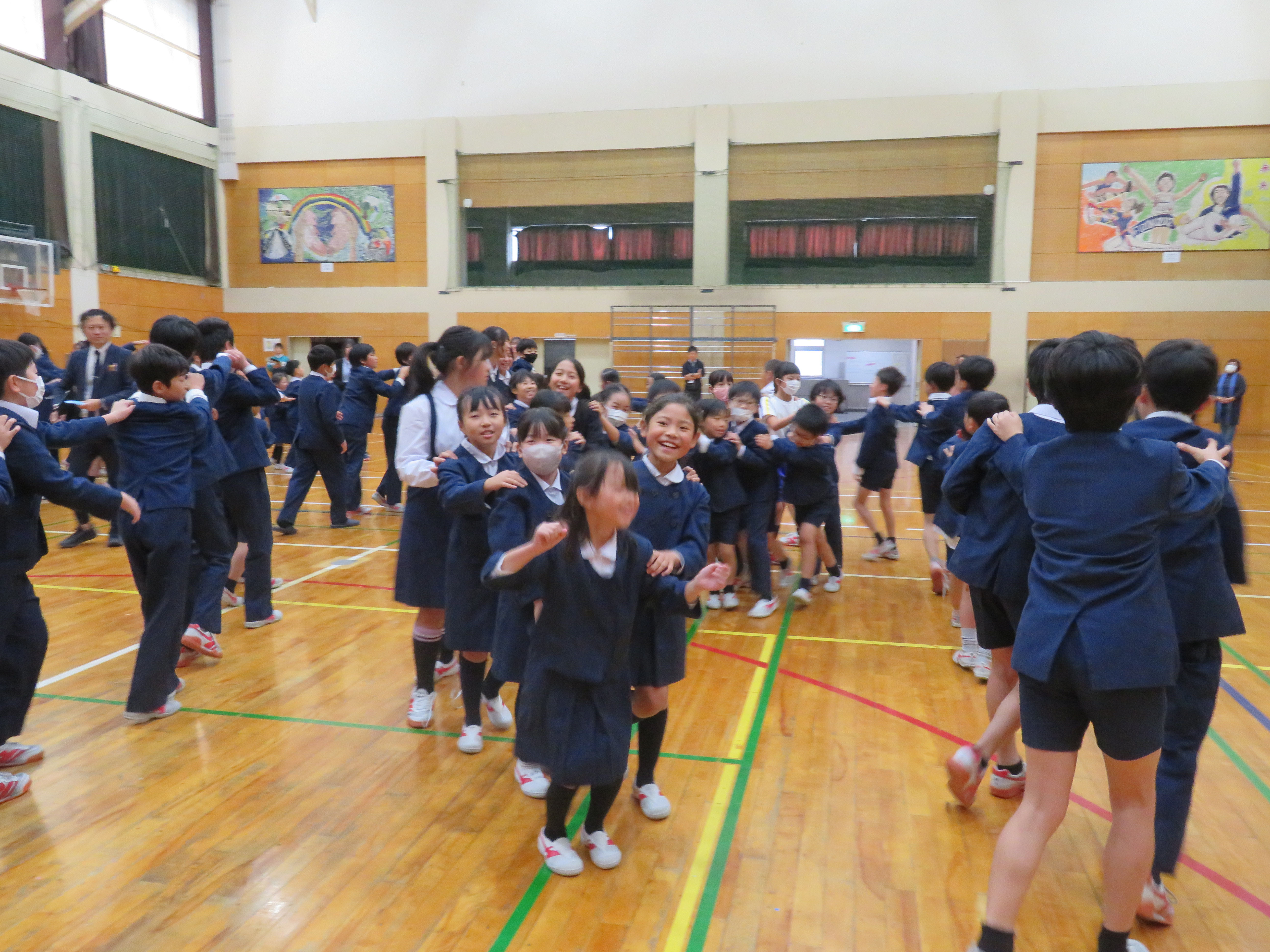 11月11日に、久しぶりに前期課程全学年が一堂に会しての集会が行われました。校歌を歌った後、副校長先生のお話を聞きました。今回「立冬」という言葉から季節に関する話と、「84」という数字から、現在の学年の登校日をいかに過ごすかという話につなげて話されました。児童代表の感想の中にも、残りの日数を有意義に過ごしたいと発表されていました。