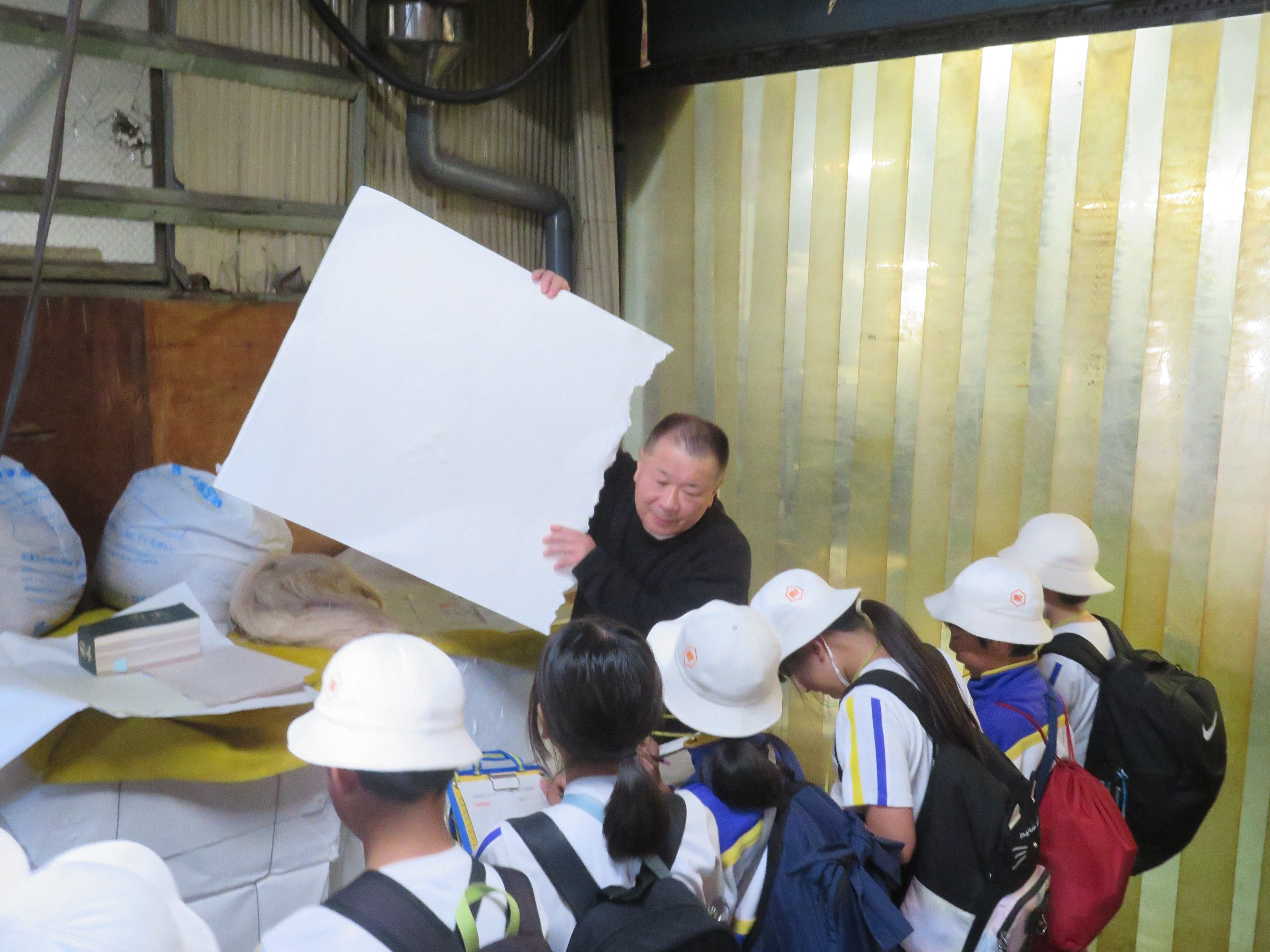 100年以上和紙作りを作り続けている小畑製紙場の見学調査を行いました。60年前から機械すきのやり方に変わったそうで、いまは卒業証書の制作が忙しいそうです。これまでは捨てられていた材料を使った、新しい和紙作りにも挑戦しているそうです。