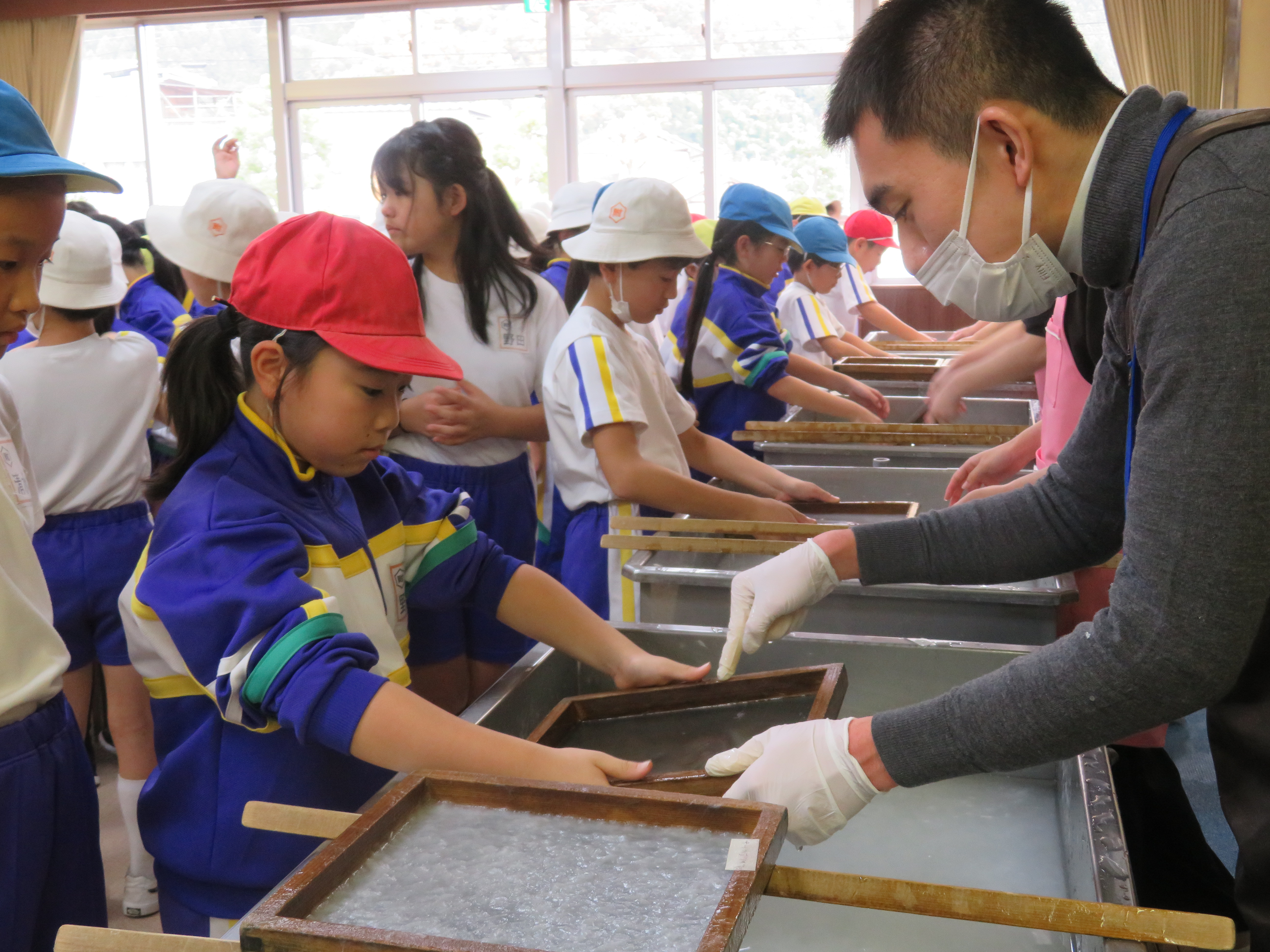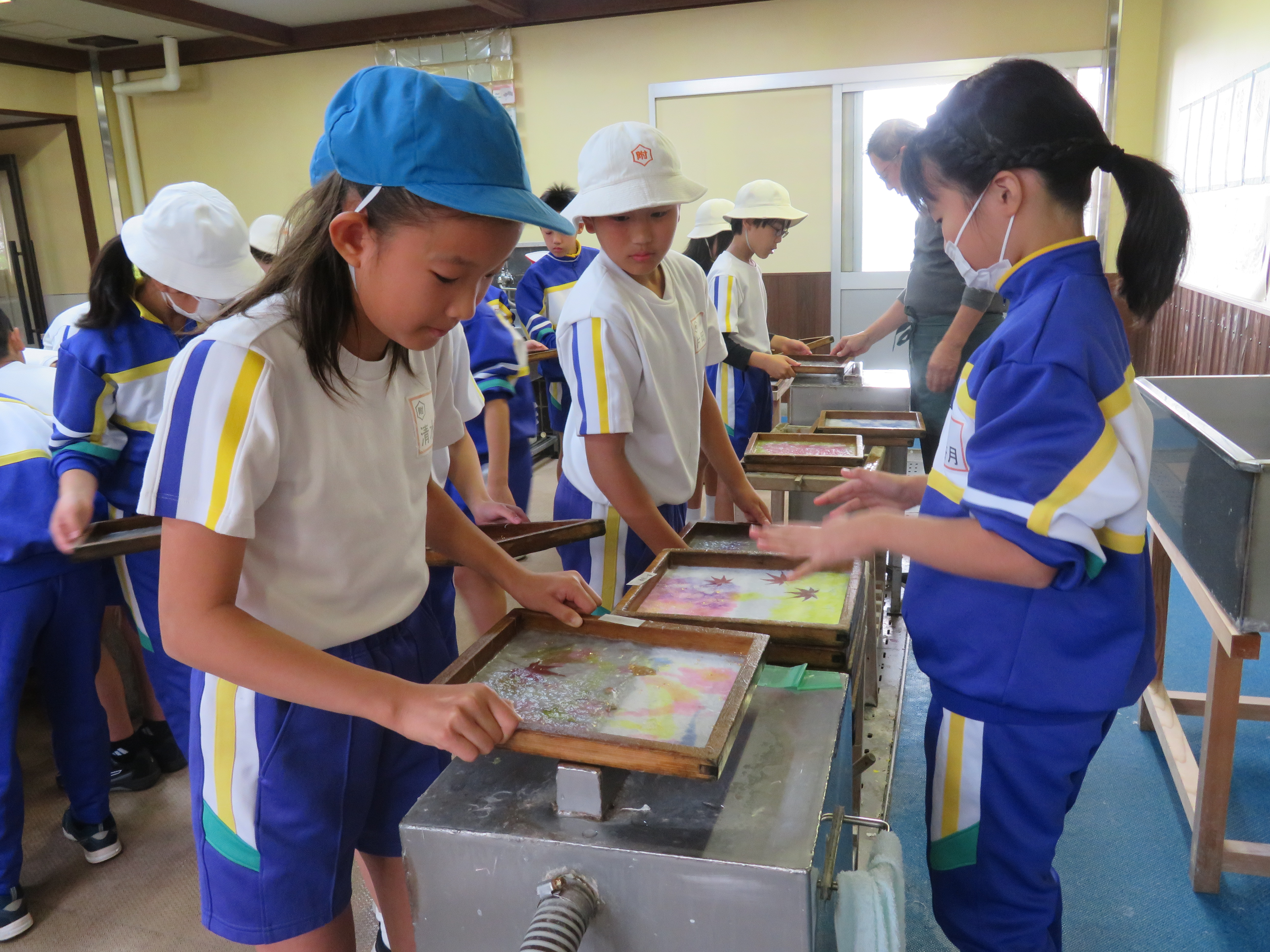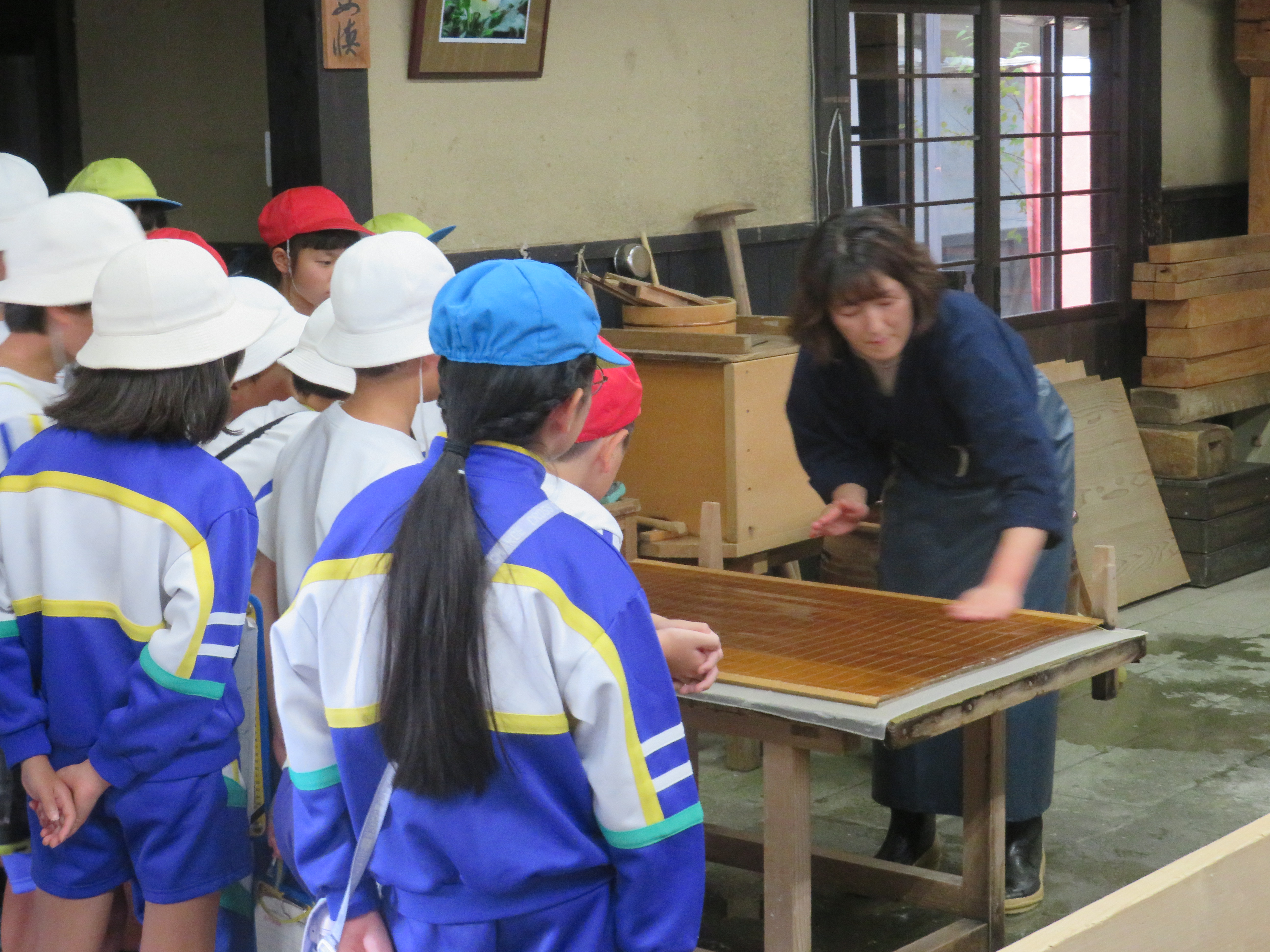 4年生が11月17日に、越前和紙の里(越前市)に校外学習に行ってきました。大滝神社、岡太神社や博物館の見学、紙漉き体験はもちろん、実際の製紙場も見学し、越前和紙についての調査活動を行いました。盛りだくさんの内容でしたが、どの子も最後までしっかりと学習することができました。