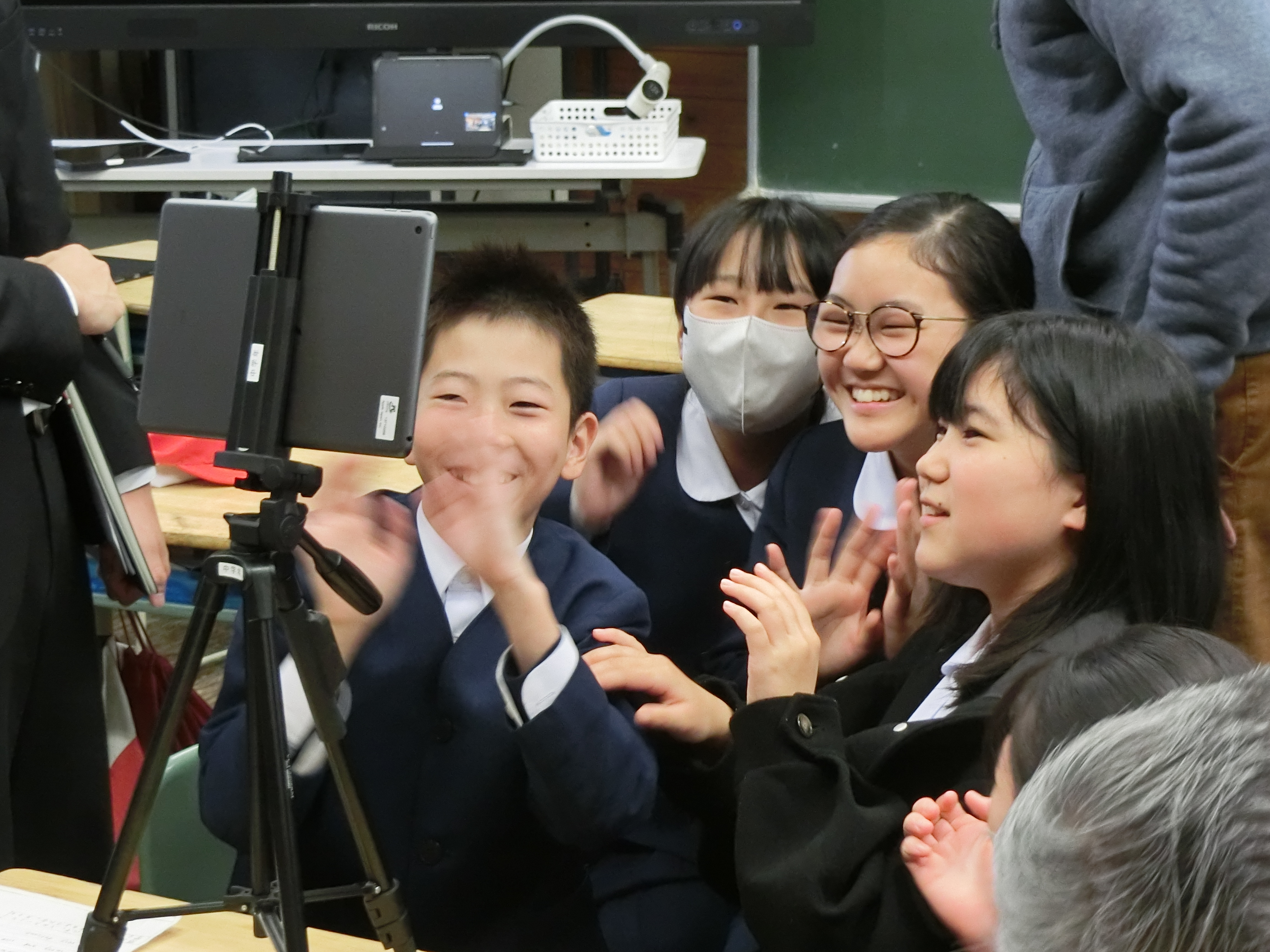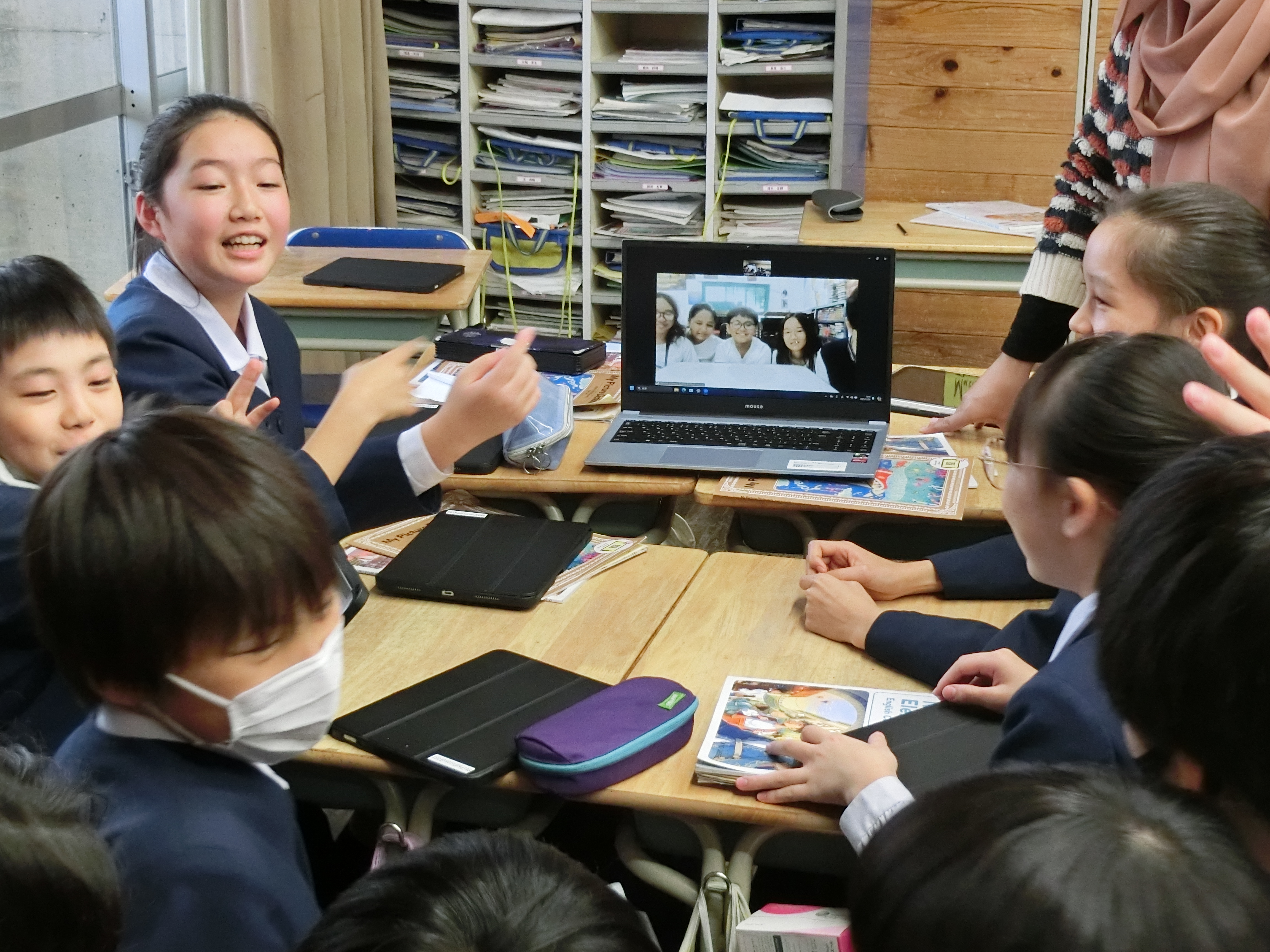 12月3日、6年生の外国語の授業で、フィリピンの学校とオンラインで交流しました。日本のことを伝え、海外のことを知りたい子供たちは、オンラインで繋がるとすぐに自己紹介を始めて、お互いのことを聴き合いました。どんどん話が広がるグループや、緊張しながら自己紹介をするグループ、タブレット画面を見せながら自分の伝えたいことを必死で伝えようとするグループがありました。笑い声や驚きの声があちこちで聞こえ、交流の時間が終わりました。最後に子供たちは、再会を約束する挨拶を交わしていました。