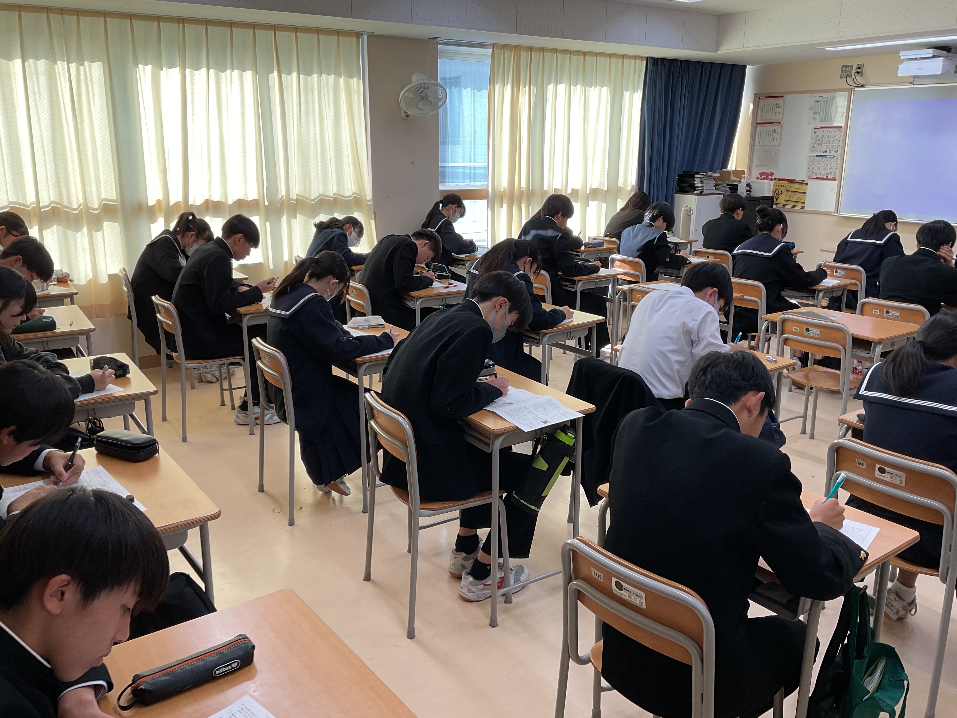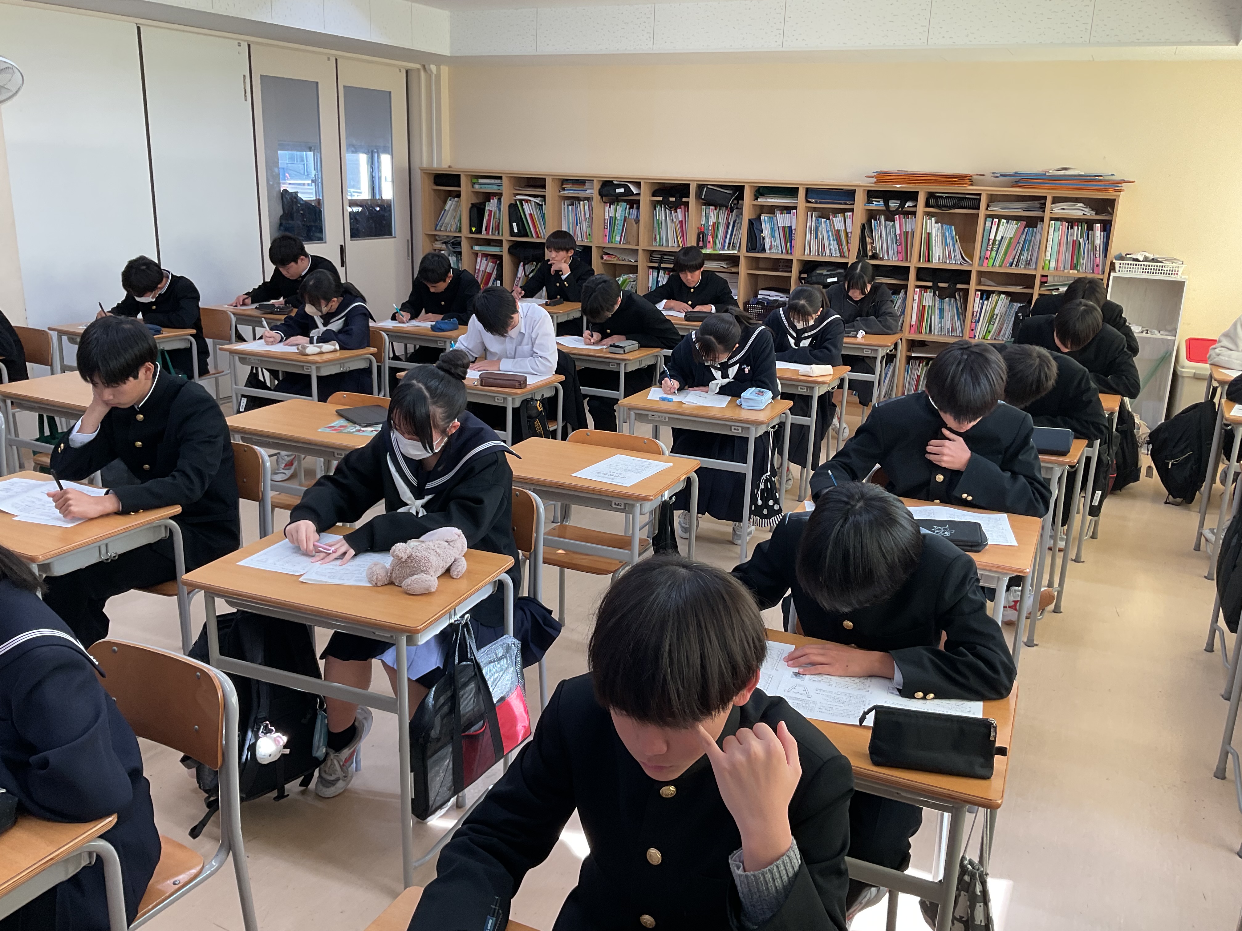 ACTIVITY 活動紹介 ホームchevron_right活動紹介chevron_right8年生chevron_right単元テストに取り組む子供たち(8年生) 単元テストに取り組む子供たち(8年生) 2025.12.9 後期課程8年生 写真は、社会の単元テストに取り組んでいる様子です。子供たちは、これまで学んできた内容を振り返りながら、真剣な表情で問題を解いています。 中間テストや期末テストなどの定期テストがなくなり、心配されている保護者の方もいらっしゃるかと思います。本校では、このように単元テストで、基礎基本の定着や、表現・応用力の習得状況を確認し、次の学びにつなげています。教室の緊張感が伝わってきます。単元テストは、社会だけでなく、国語や理科など、さまざまな教科で実施されています。