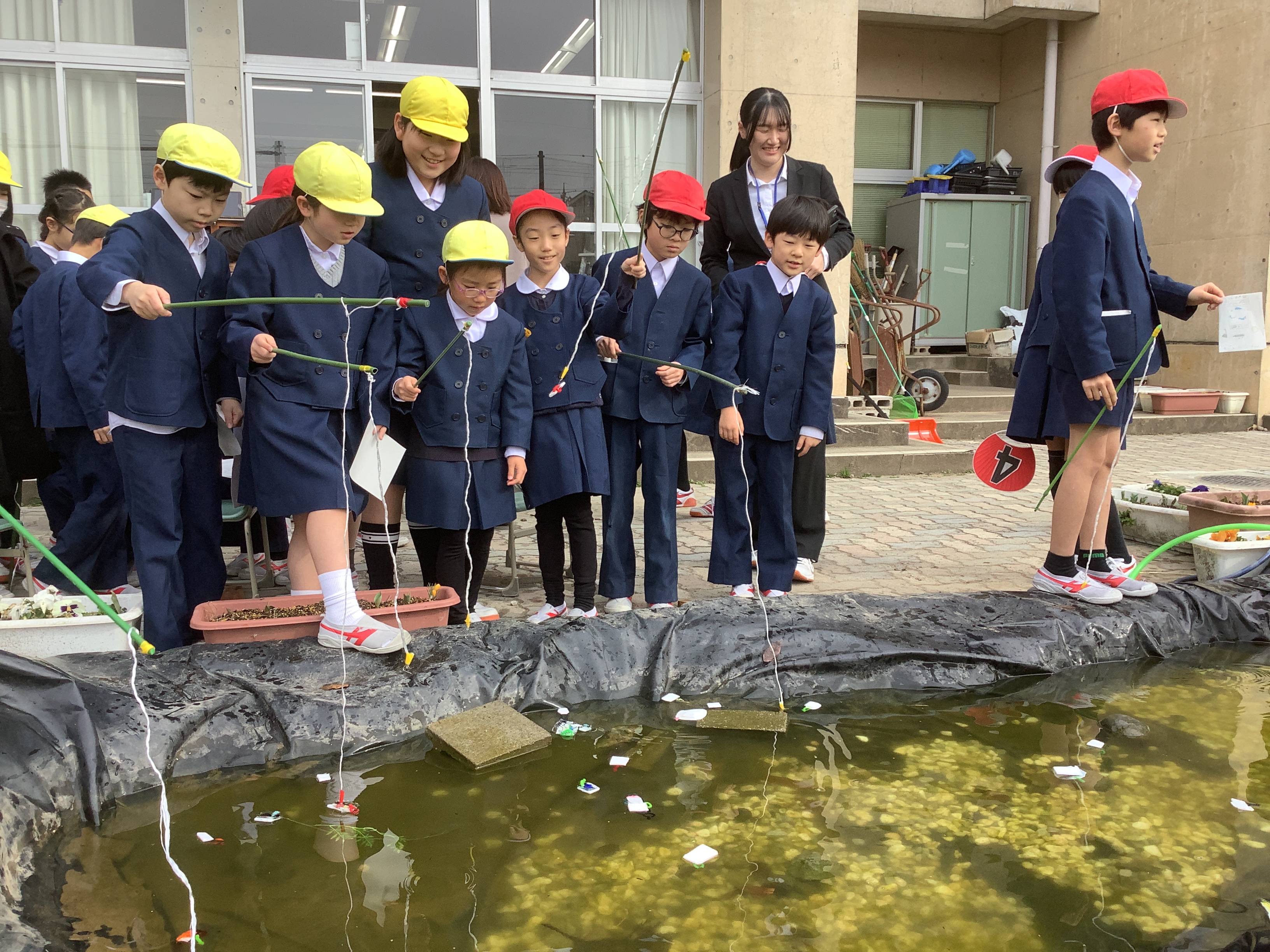 社創の時間に手作りした池をつかった魚釣りゲーム