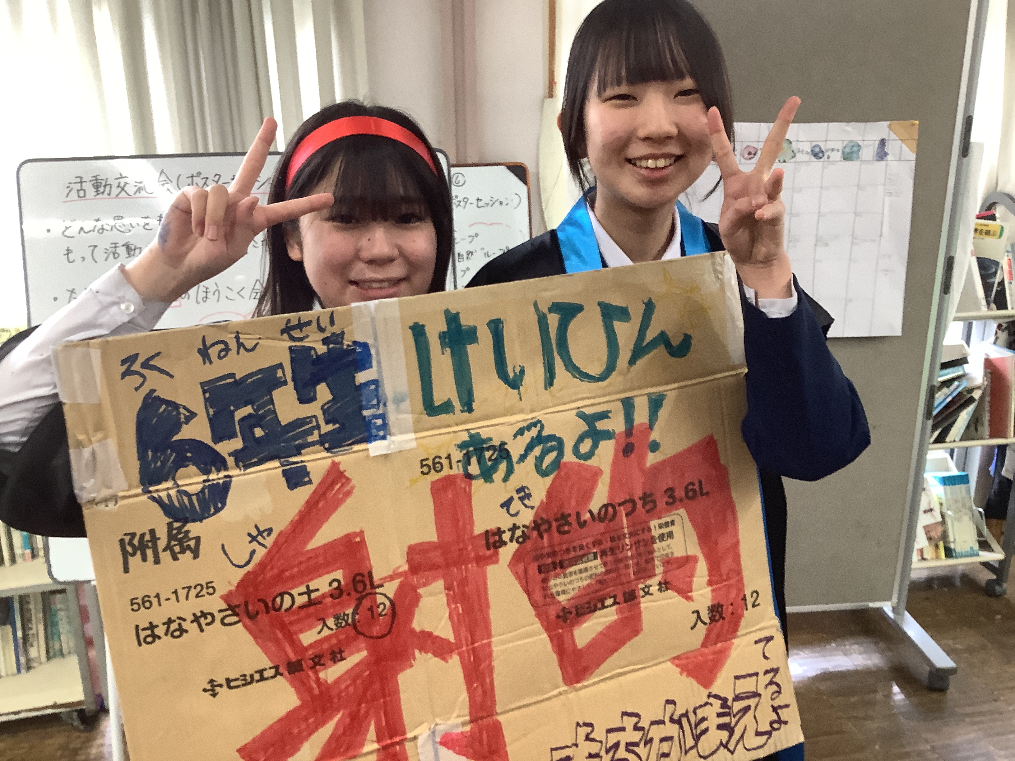 自分たちのイベントに呼び込むために、看板を持って校舎を巡回します
