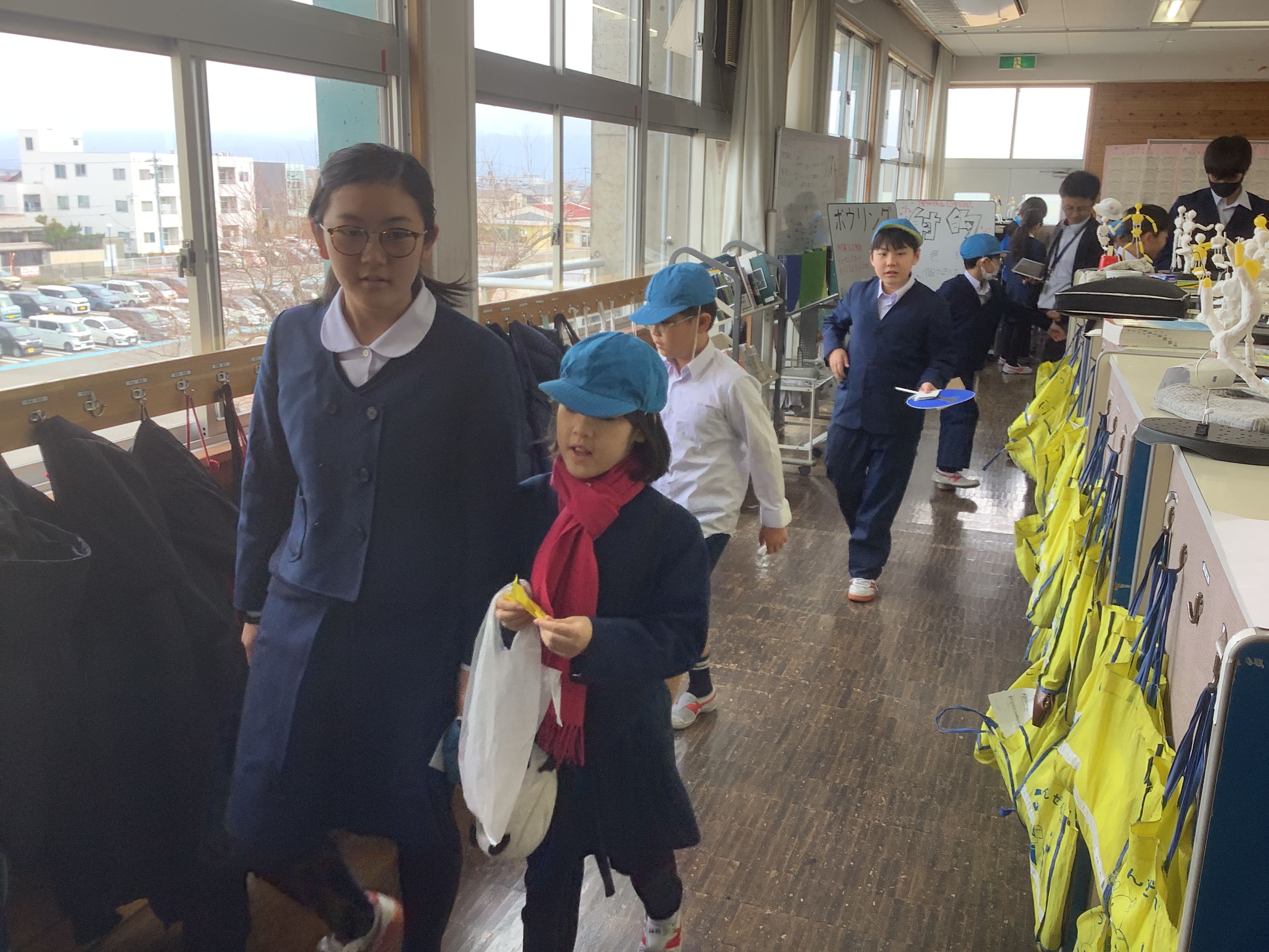 メッセージカードを見る6年生