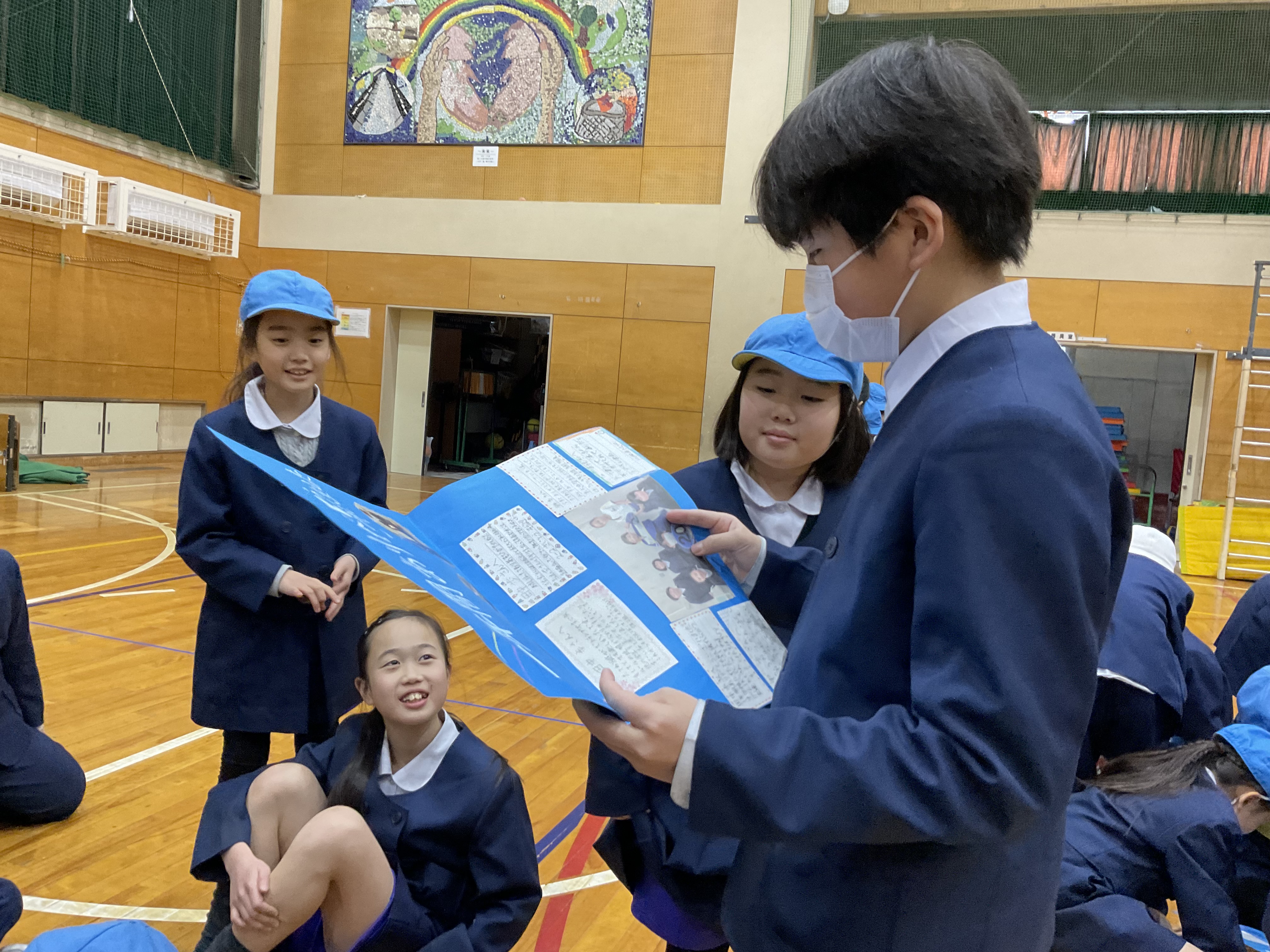 3月2日(月)にふぞくフェスが行われました。5年生を中心に、みんなでいろいろな企画を準備しました。午前中はお世話係とお客さんを交代して、全員が全学年のイベントを縦割り班ごとに回りました。それぞれの学年がこれまでの学びを活かしていろいろなイベントを準備していたので、どの縦割り班もとても楽しそうでした。お昼ご飯は縦割り班ごとにお弁当を食べました。5年生が考えたクイズや占いで一気に雰囲気がよくなり、その後の会話が弾みました。午後はラボの発表と5年生企画のゲームを楽しみました。3つのラボが発表しましたが、どのラボの発表もレベルの高いものでした。ゲームもみんなが参加できるように工夫されたゲームだったので、会場は大いに盛り上がりました。6年生へのプレゼント渡しのあとは、6年生の合唱、1~5年生の斉唱となり、会場が温かい雰囲気に包まれました。渡されたメッセージカードを読んでいる時の、6年生の嬉しそうな顔が印象的でした。