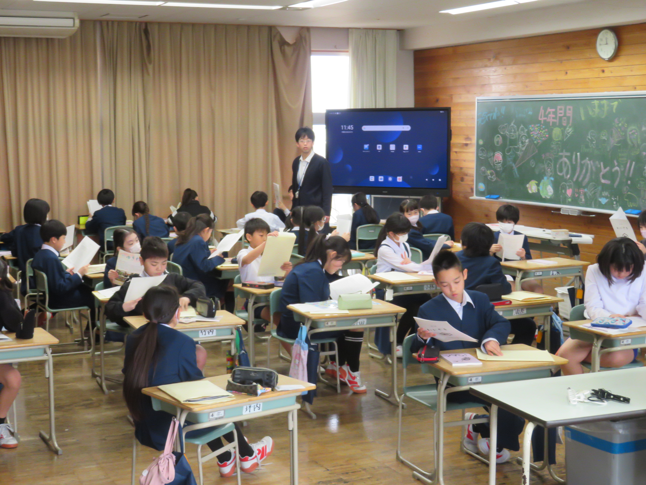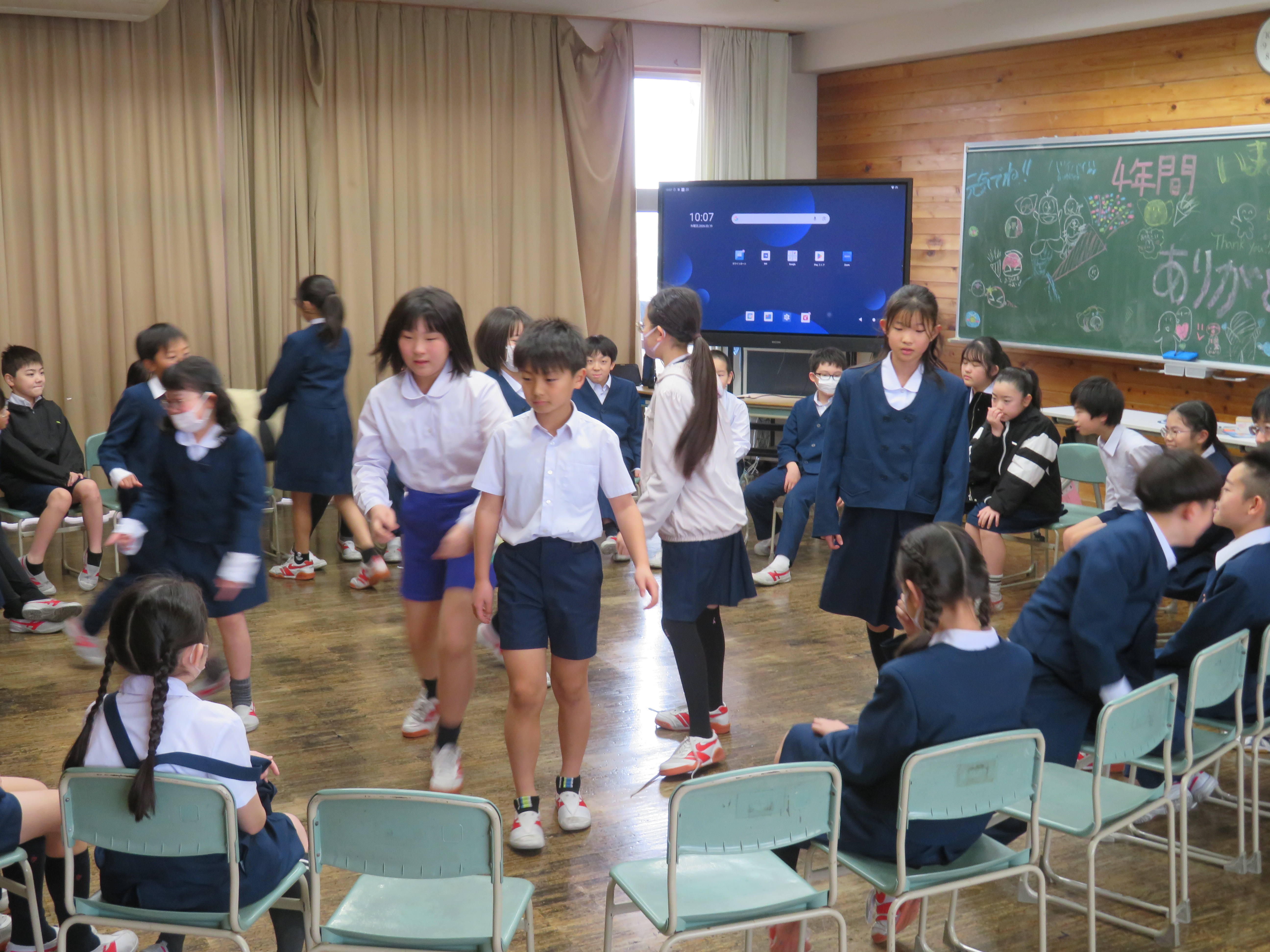 5年生になるとクラス替えをする4年生は、最後のお楽しみ会で大いに盛り上がっていました