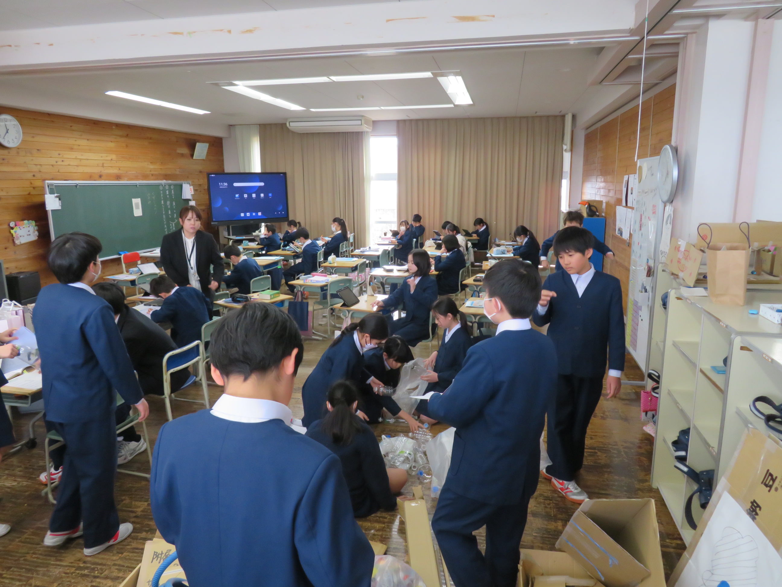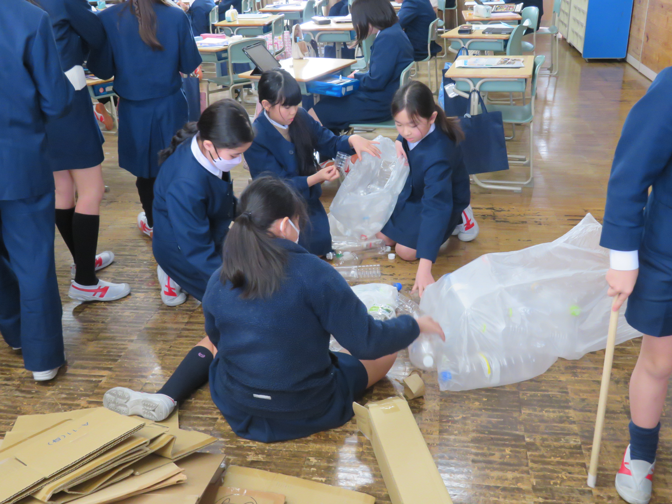 5年生はふぞくフェスや社会創生プロジェクトで使ったいろいろなものの後始末をしていました